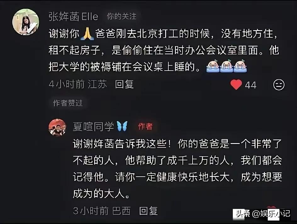 看到张姩菡小朋友在网上回复网友的那句话,我这颗悬着的心总算放下了。她说“爸爸很伟大,文曲星换届选中了爸爸”,多懂事的孩子啊,用这么浪漫的说法给爸爸的一生做了总结,也像是在安慰所有惦记着张雪峰的人。 说实话,张老师走后,我最担心的就是这个小姑娘。以前张雪峰在直播里提起女儿,满脸都是“我闺女不能吃一点苦”的宠溺,给她铺的路那叫一个平——不想卷就不卷,想进银行就把存款存过去,恨不得把全世界最好的都捧到她面前。那时候大家都觉得,这闺女命真好,有个能遮风挡雨的靠山。 可现在靠山没了。 但我反而觉得,这对张姩菡来说,未必全是坏事。以前爸爸把什么都安排好了,她只需要在保护罩里无忧无虑地长大。现在保护罩没了,她会疼,会想爸爸,但也一定会比同龄人更快地长大。你看她回复网友时的那份从容和通透,哪里像是个刚失去父亲的孩子?她已经在用自己小小的肩膀,扛起对爸爸的思念和体面了。 张老师给她留了足够多的物质保障,但真正能让她好好长大的,是她自己那颗坚强的心。我特别想知道,你们觉得,像张姩菡这样一夜之间被迫长大的孩子,最需要的到底是什么?是钱,是陪伴,还是别的什么?来评论区聊聊吧。