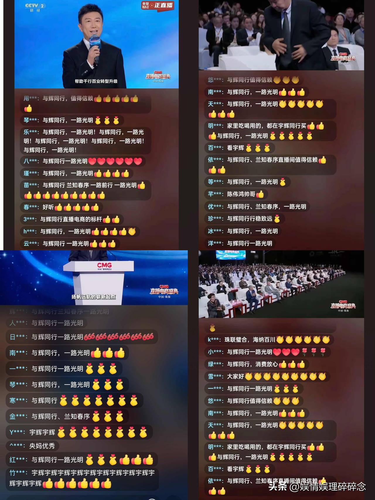 当央视财经的直播画面里,满屏滚动着“与辉同行,一路光明”,这不是简单的粉丝应援狂欢,而是千万人用弹幕,共同诠释了什么叫真正的影响力。 董宇辉在CMG直播电商盛典上的演讲,一如既往的“稳”,无需多言。他从来不是讲“正确的废话”,是用自己的亲身经历,把“直播电商”这个抽象概念,变成了一个个有温度的故事。 而这些故事,全是带着温度的个人记忆: 小时候在农村摘棉花的腰酸眼花,让他在新疆棉田里感慨机械化的力量; 早年吃小龙虾肿成香肠嘴的经历,让他更懂“纠正一次谣言,就是对产业莫大的帮助”; 走过全国20多个省市,把山河风物变成直播间里的故事,让消费者看见“吃穿用度从何而来”。 他在教大家怎么“看见”——看见土地,看见劳动者,看见每一件商品背后的人。他把“直播电商”翻译成普通人能懂的语言: 看见源头,才能生长信任;看见劳动者,才能真正链接民生。 而满屏的弹幕,正是这份共情最直接的回应。宇辉把粉丝当成一起阅山河、共成长的伙伴,粉丝也愿意在国家级的舞台上,用满屏弹幕为他站台。 宇辉用共情换来了信任,我们用信任回应了他的初心。这才是最长久、最动人的影响力。