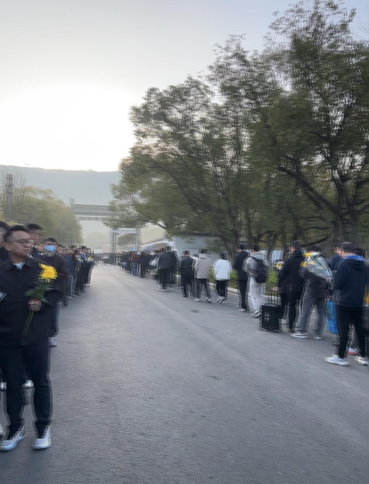 张雪峰告别会,现场有“三多”: 人多 排队已经排到殡仪馆门口的街道上,而且有折还绕圈了。 花多 吊唁的人群送来的鲜花,已经多到,都摆放到了殡仪馆门口了。 书多卡片多 不少人手拿着书,拿着写有话语的卡片,来送别张老师。