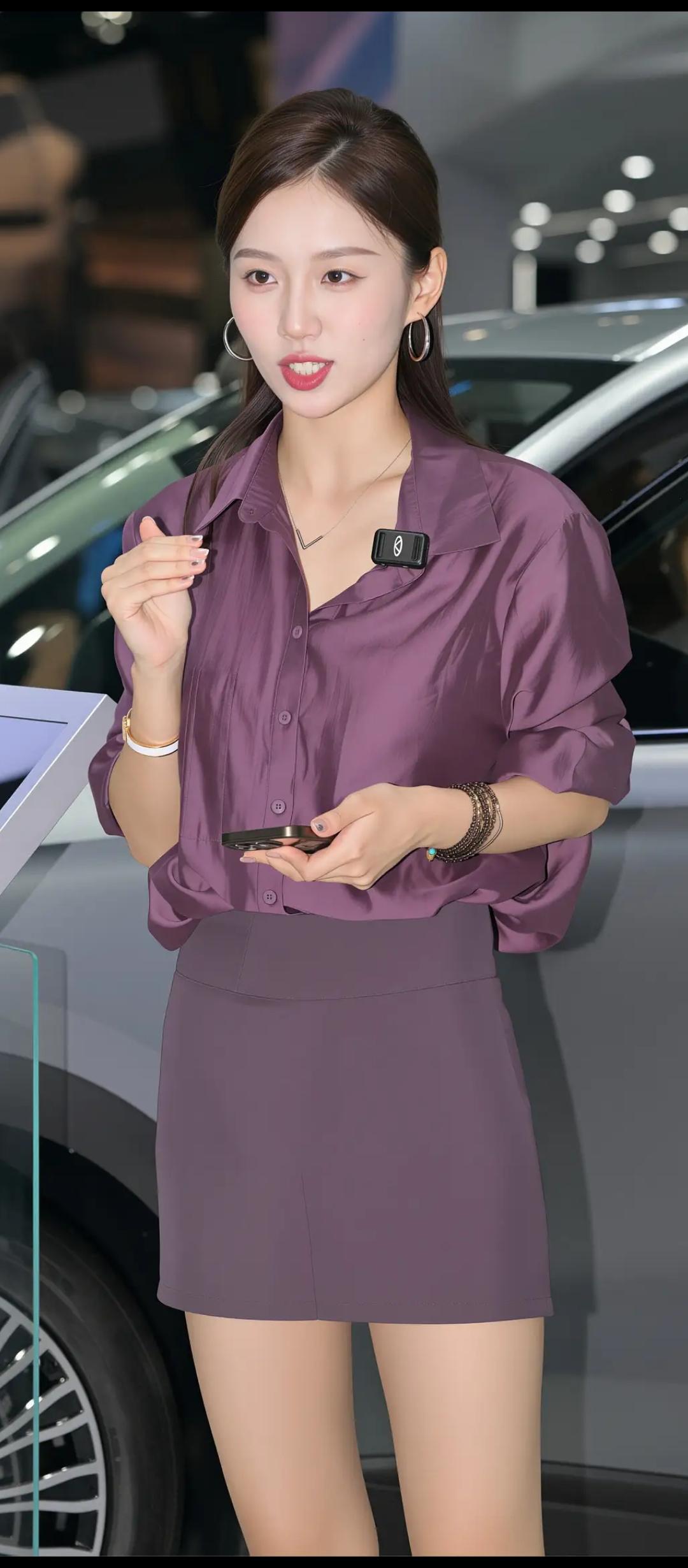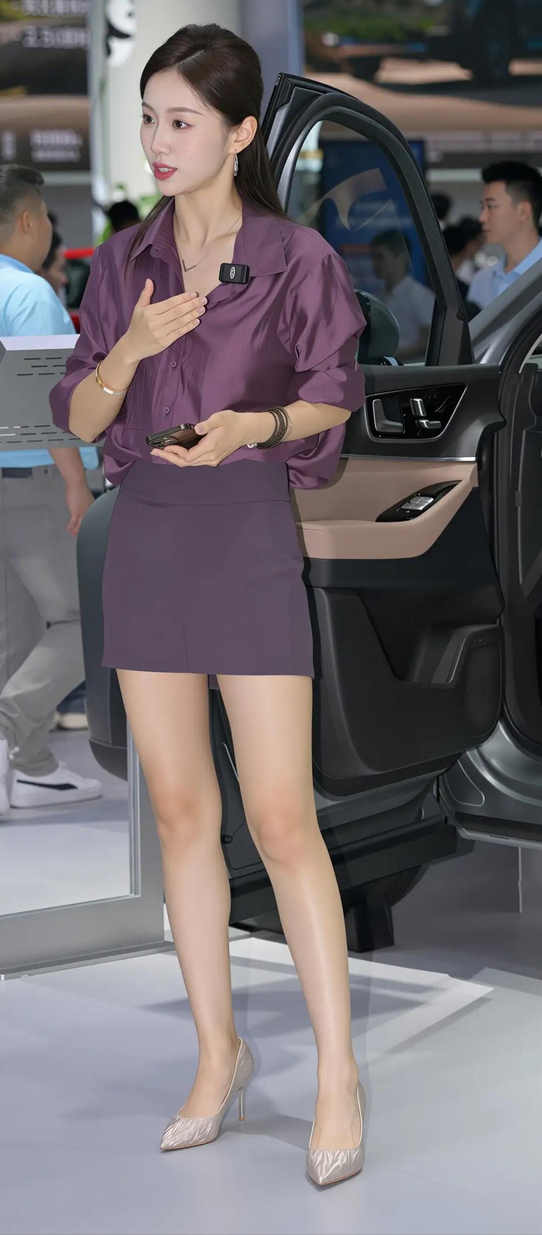 紫衣美人立,车旁似有情。