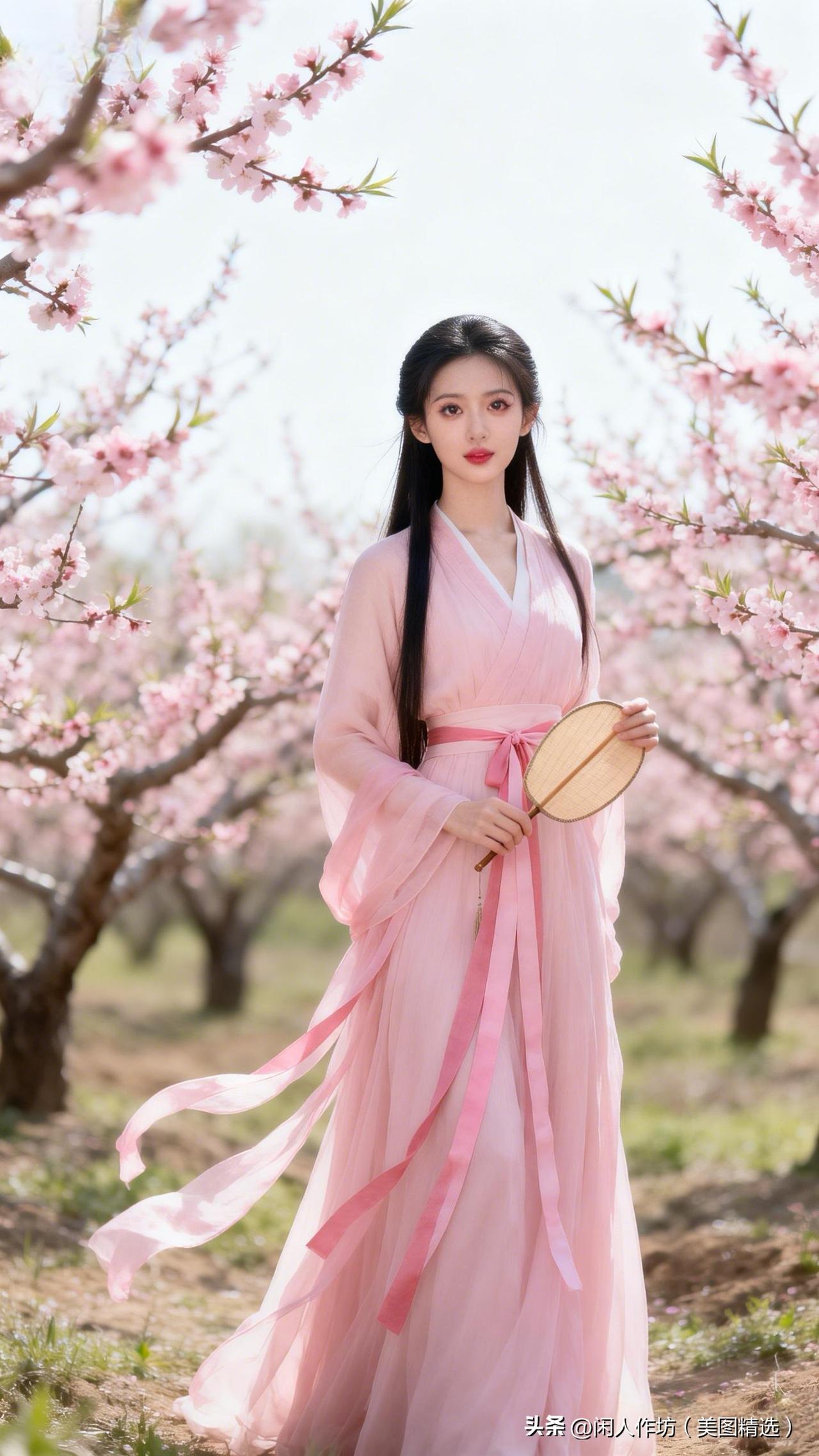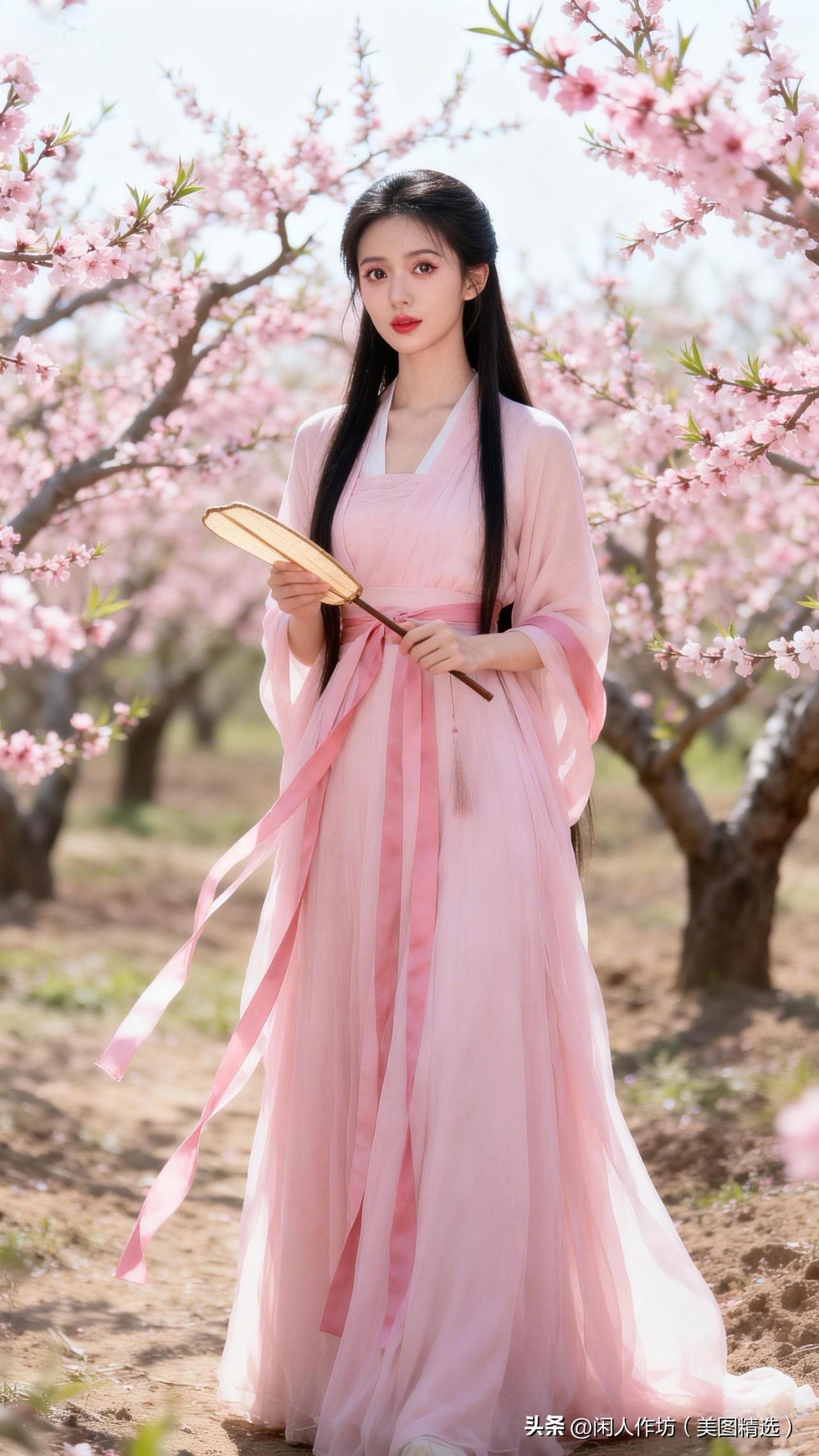 十里桃源映倩影手持宫扇舞春风