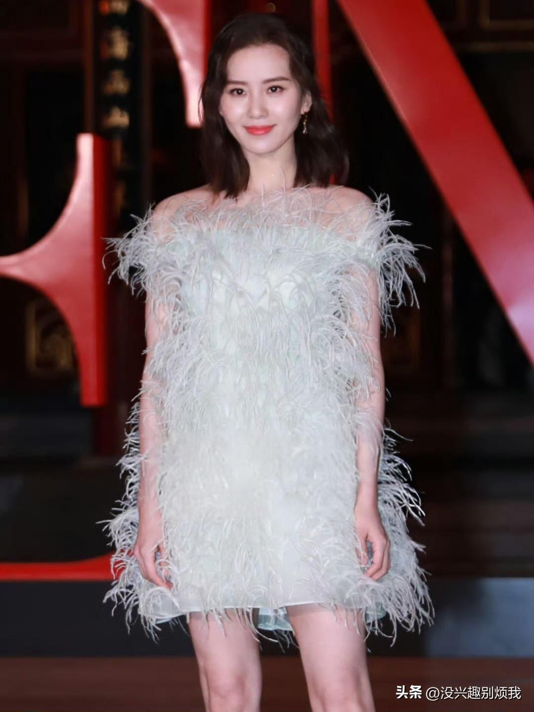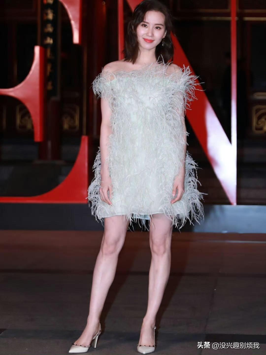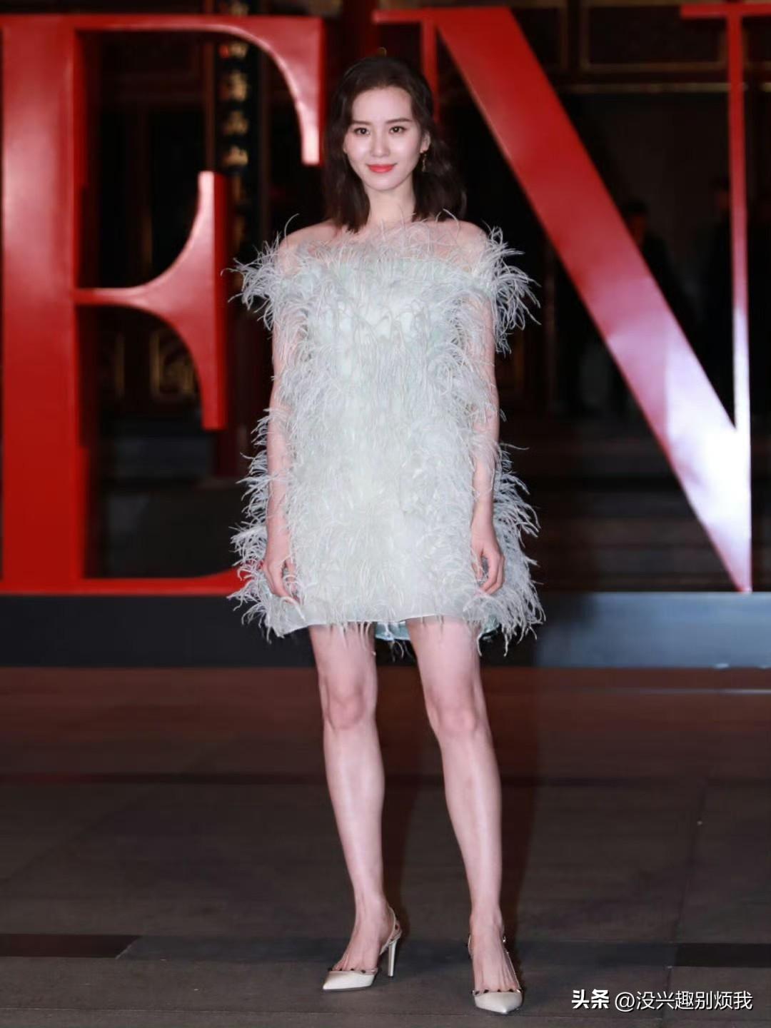 刘诗诗看秀生图,淡绿色羽毛短裙仙气十足