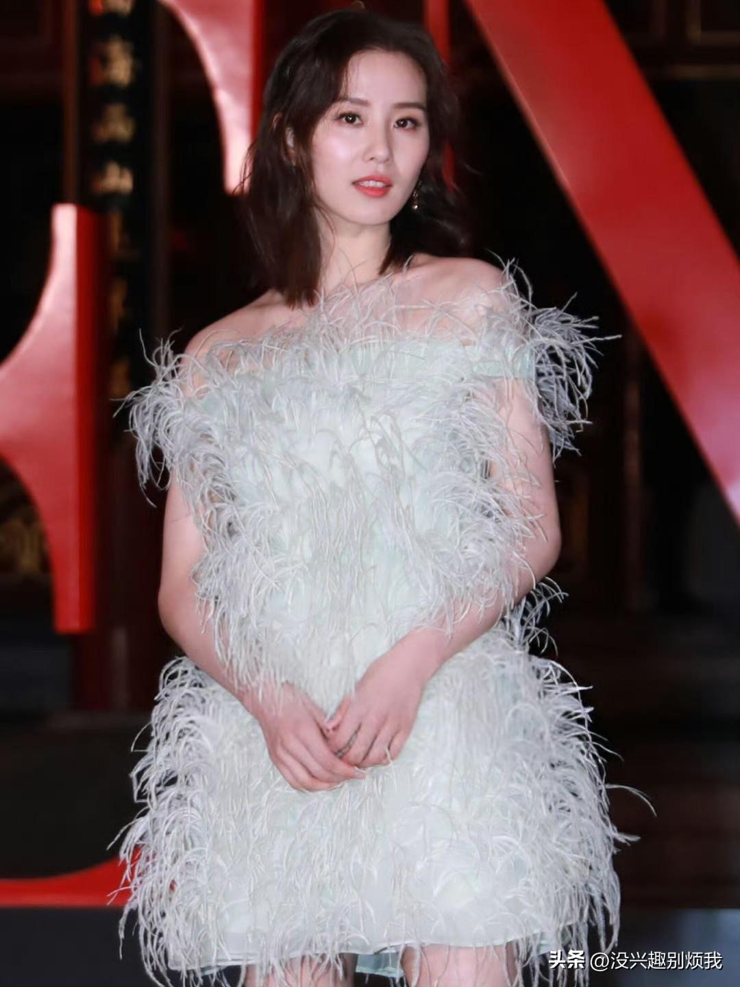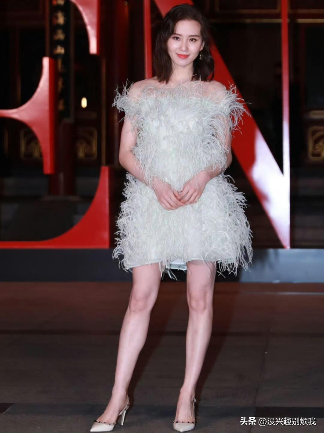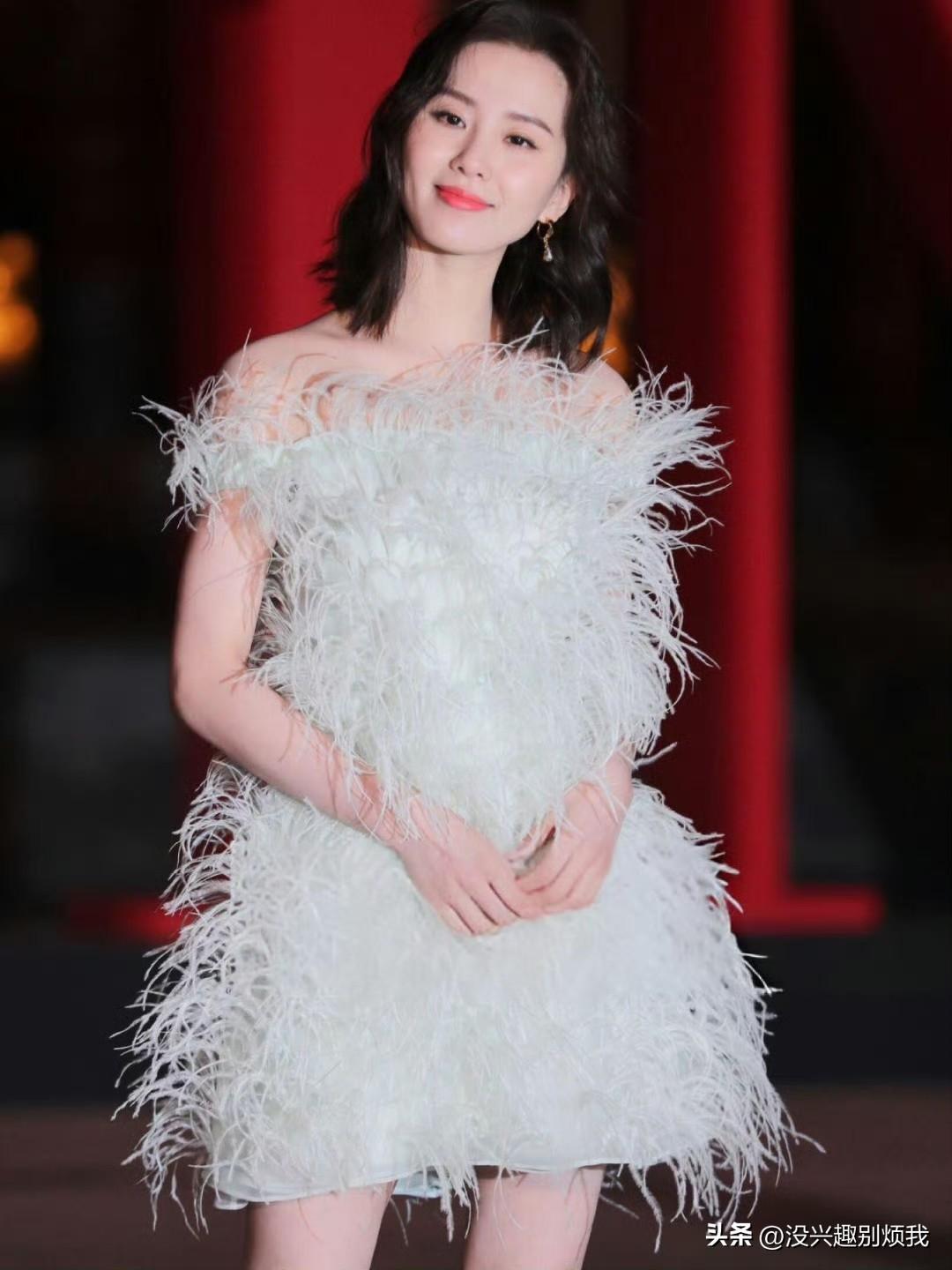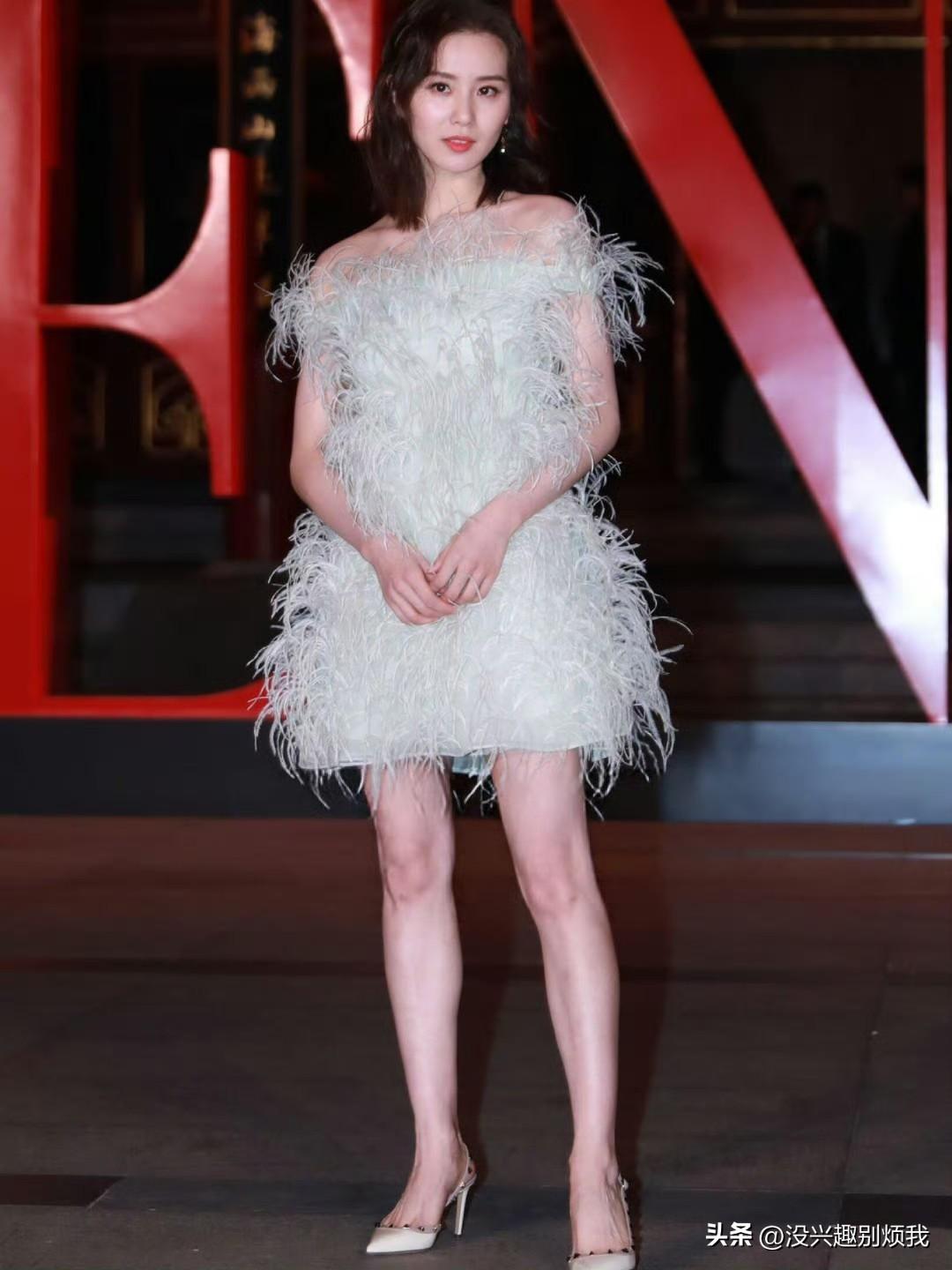 刘诗诗看秀生图,淡绿色羽毛短裙仙气十足