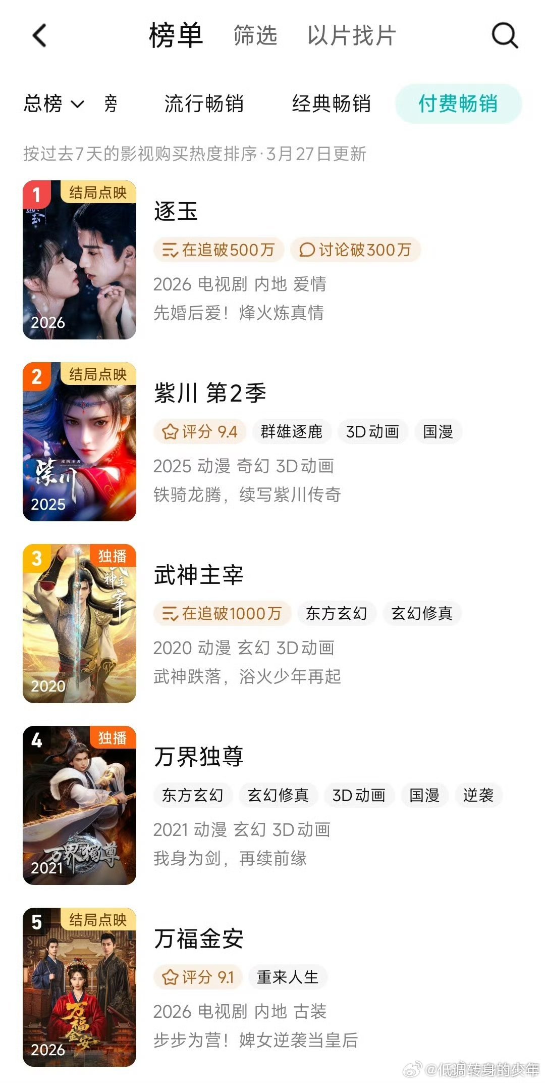 张凌赫头上戴的雉鸡翎到底是什么 增幅逆跌杀入🐧拉新年榜第12位,超点日空降至付费周榜第一,逐玉版权泄露还能有如此成绩已是不易,一剧一命,逐玉已经很强了张凌赫头上戴的雉鸡翎到底是什么
