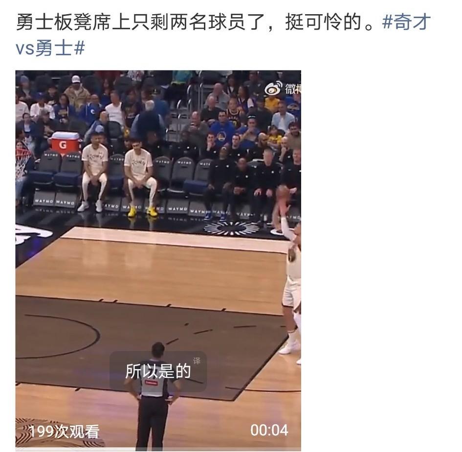 第一节结束,勇士36-25领先奇才。在休息一天之后,勇士在控球上更为流畅,目前没有失误。 惨烈的是勇士替补席上只有2人。伤病众多,库里兄弟、霍福德、波姐、穆迪……