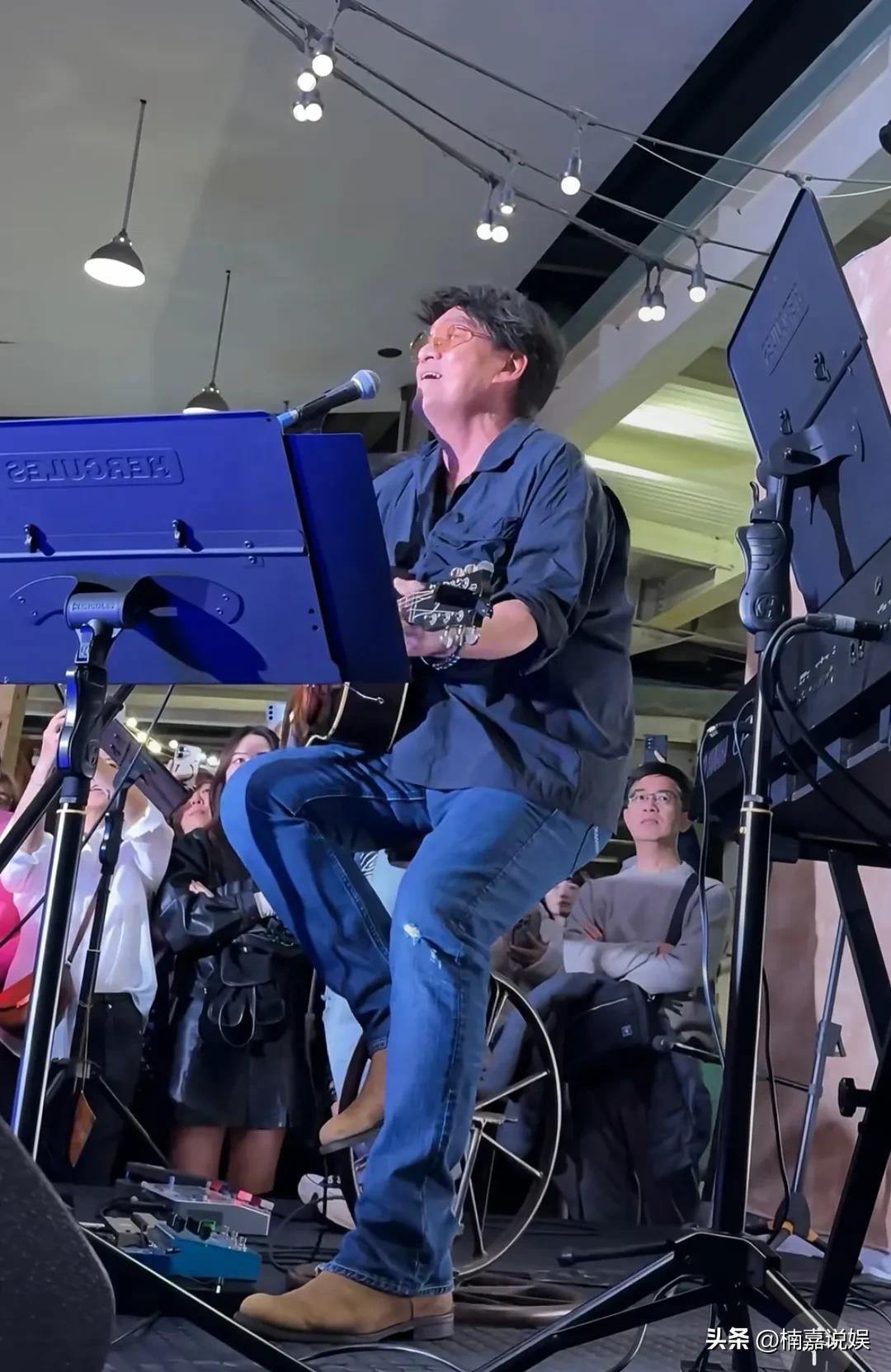 周华健在街头摆摊试唱新歌,老婆康粹兰低调的现身支持! 穿着一身牛仔服的周华健,帅气有型,法拉利老了还是法拉利。他一边唱一边弹着吉他,声音仍然宝石级别的,淳厚迷人有质感,充满情感,扣人心弦。 65岁的康粹兰女士,头发花白,戴着眼镜,穿搭朴素,站在一旁静静的看着老公的表演。 有粉丝向她打招呼,她热情的回应。 有路人问她是不是周老师的老婆,她马上向路人展示了她手指头上的婚戒,好可爱的动作。好像在说,看看吧,台上那个帅气的男人,是我老公,我是他的老婆。[捂脸]