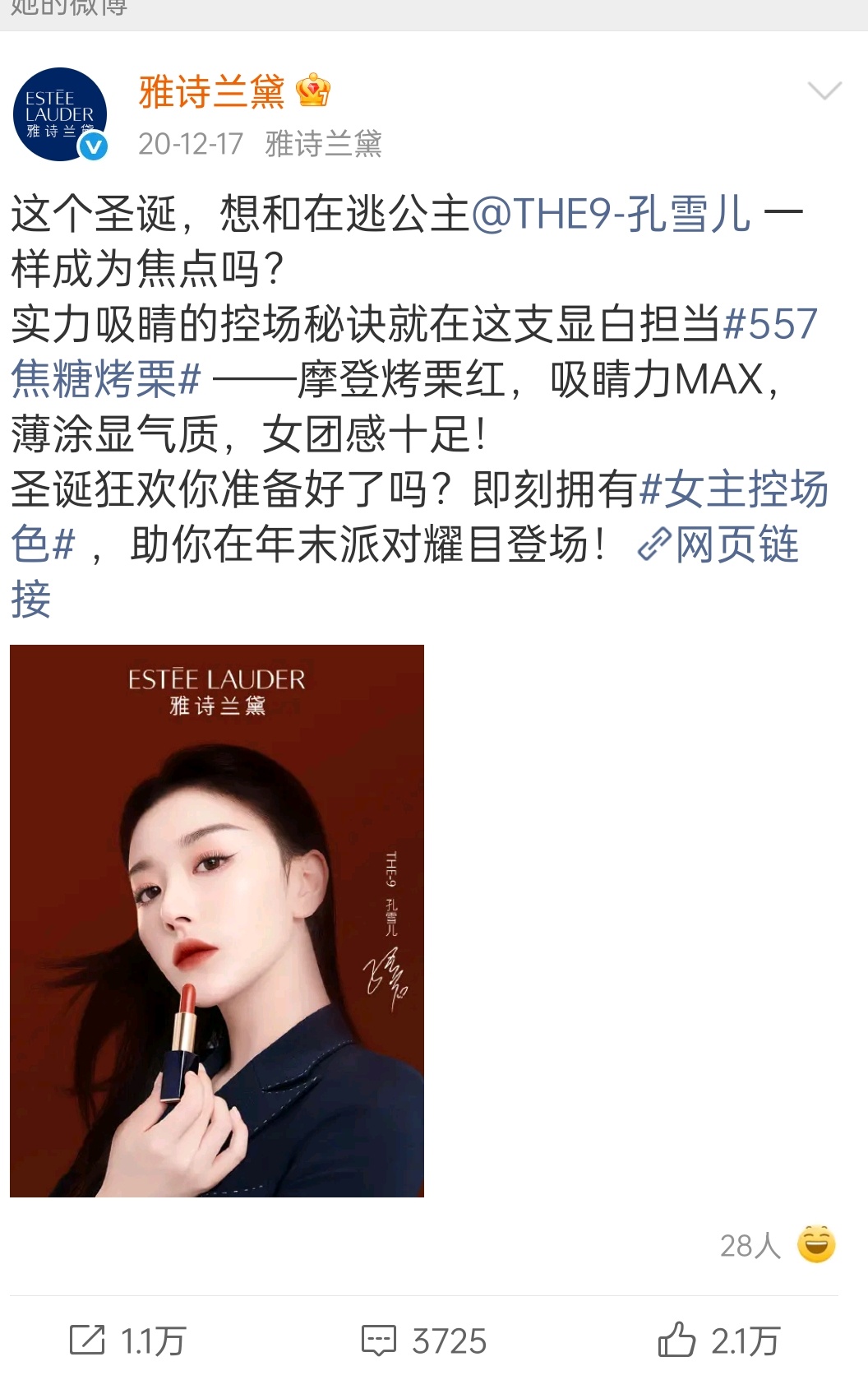 孔雪儿六年前推广雅诗兰黛(还只是推广哦),现在同公司的哈妮克孜推广雅诗兰黛