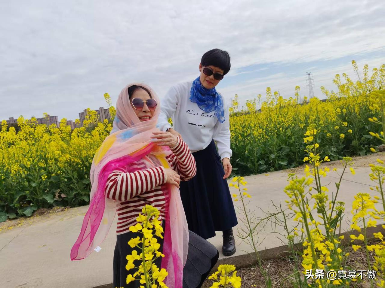 今天下午和两个小姐妹去郊外拍油菜花。天气不错,暖暖的阳光高照。田园一片金黄,空气里飘着花香。有好几伙年轻人,穿着漂亮的衣裙,正在不远处忙碌。