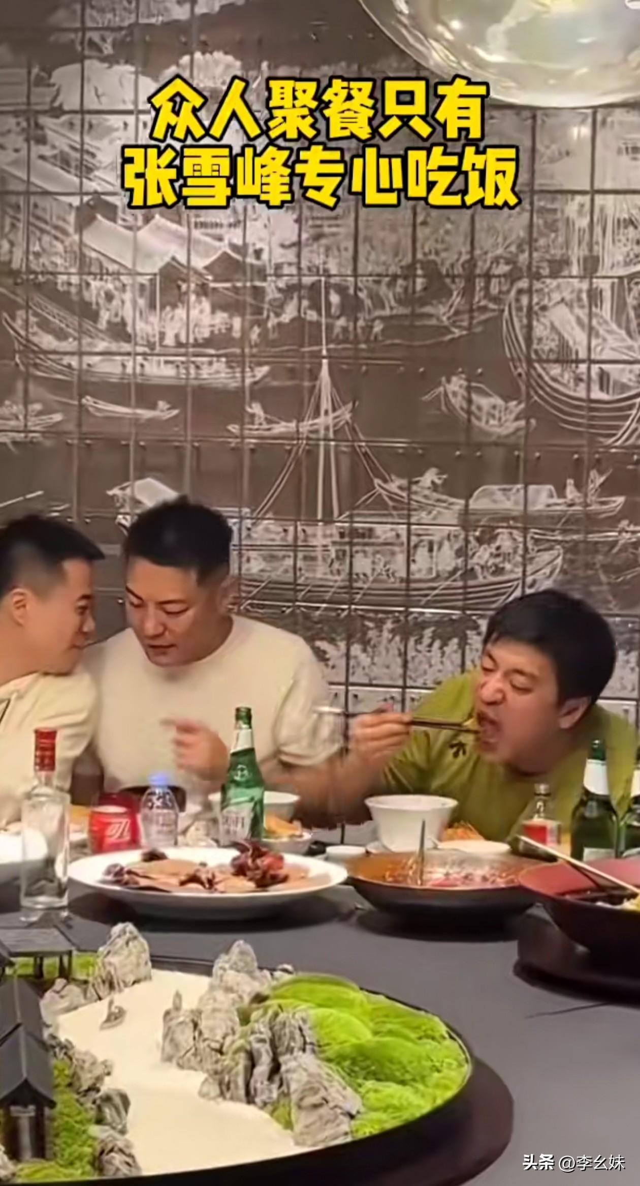 真的看得出来他已经很累了,众人聚餐,就只有他一人在认真吃饭