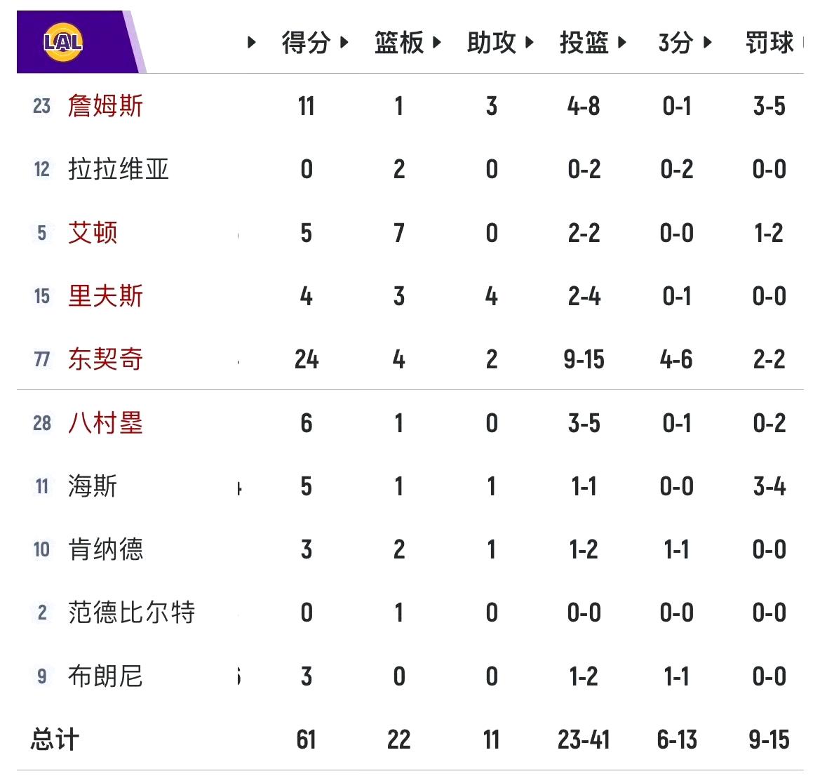 半场结束,湖人61-59微弱领先篮网。上半场湖人似乎有点大意,雷迪克似乎想做点什么,至少他考虑更远。 明明可以轻松赢下比赛,非要给本就疲累的主力阵容上上强度。 篮网最后扔进压哨三分将比分缩小两分,湖人防守紧不起来啊,这样状态主力也别想休息了。 父子连线,场面效果来了,球队的化学反应没了,搞不好今天会爆冷输球。