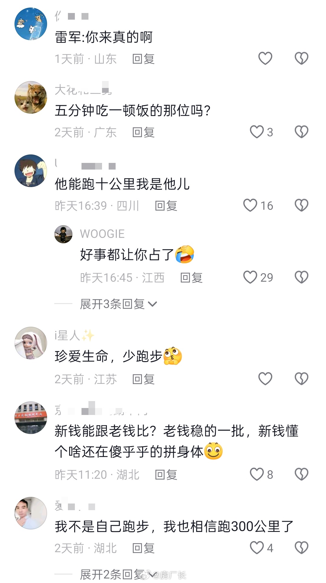 这两天网上好多质疑雷军跑步的,不信他每天能跑十公里,非要他直播才信吗