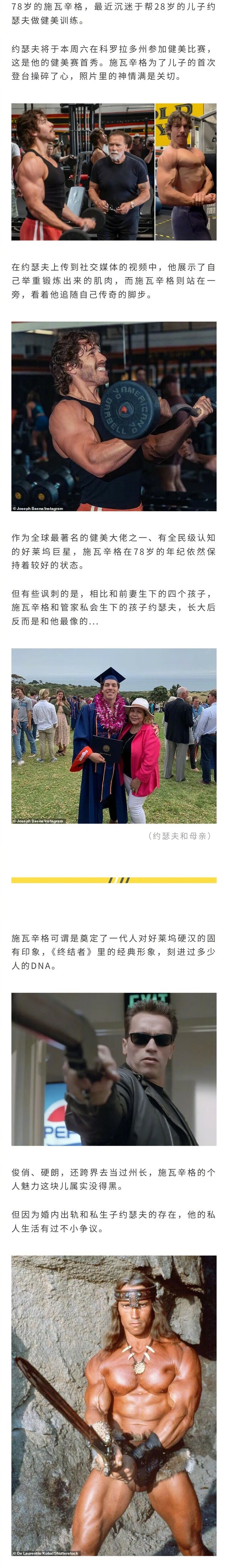 巨星施瓦辛格78岁高龄陪28岁儿子健身,媒体蛐蛐:5个孩子里私生子反而是和他最像
