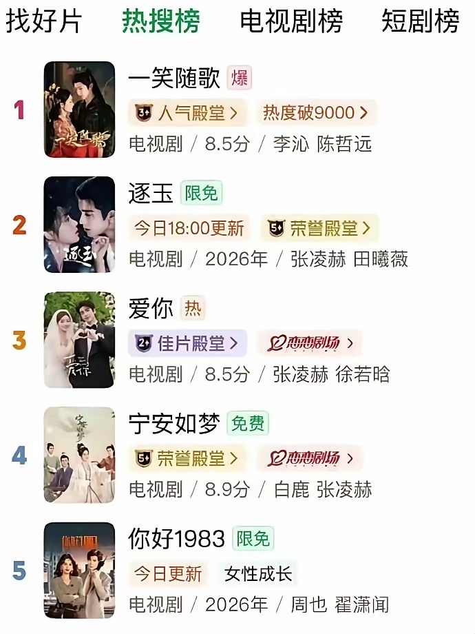 万万没想到,一部被平台放养了169天的古装剧《一笑随歌》突然登上热搜了?这部剧在当时播出时,零热搜,零首页推荐,主演也不营业,平台似乎也忘了这部剧。