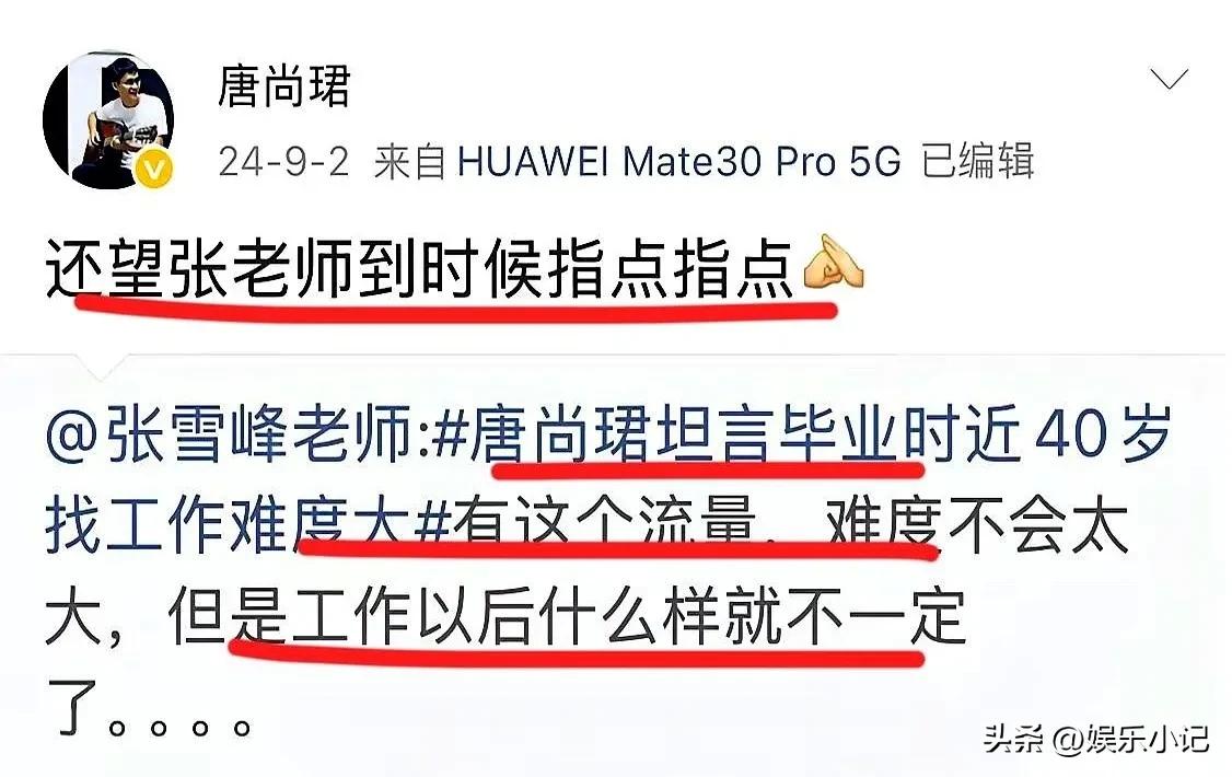 高考钉子户唐尚珺发文悼念张雪峰,只提了一个细节——他们只聊过一次,张雪峰最后给他的建议是:你快40了,本科毕业不好找工作,去考个研吧。唐尚珺回了四个字:望您指点。然后,就再也没有然后了。 我盯着这个细节看了很久。一个高考了十几年的人,终于放下执念,想问问下一步怎么走。一个帮无数人规划路的人,最后一次给出建议。两个都在跟命运较劲的人,隔着屏幕完成了这场未完成的对话。唐尚珺以为这只是开场,随时可以续上。可那个对话框,永远停在了“望您指点”那里。 说实话,这事儿最戳我的不是生死,而是那种“来不及”的荒诞感。唐尚珺这辈子都在追一个“来得及”——来得及考上好大学,来得及改变命运。可当他终于肯开口问路的时候,指路的人先走了。张雪峰帮那么多人避过坑、绕过弯,唯独没算到自己会提前下车。命运有时候就是这么不讲理,一个拼命想拿到入场券,一个拼命给画地图,结果谁都没按预想的走完。 你说,人生里有多少“望您指点”,是再也没有回音的?