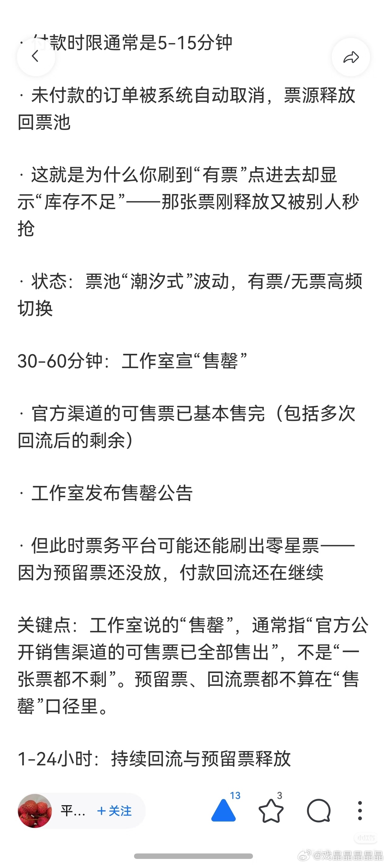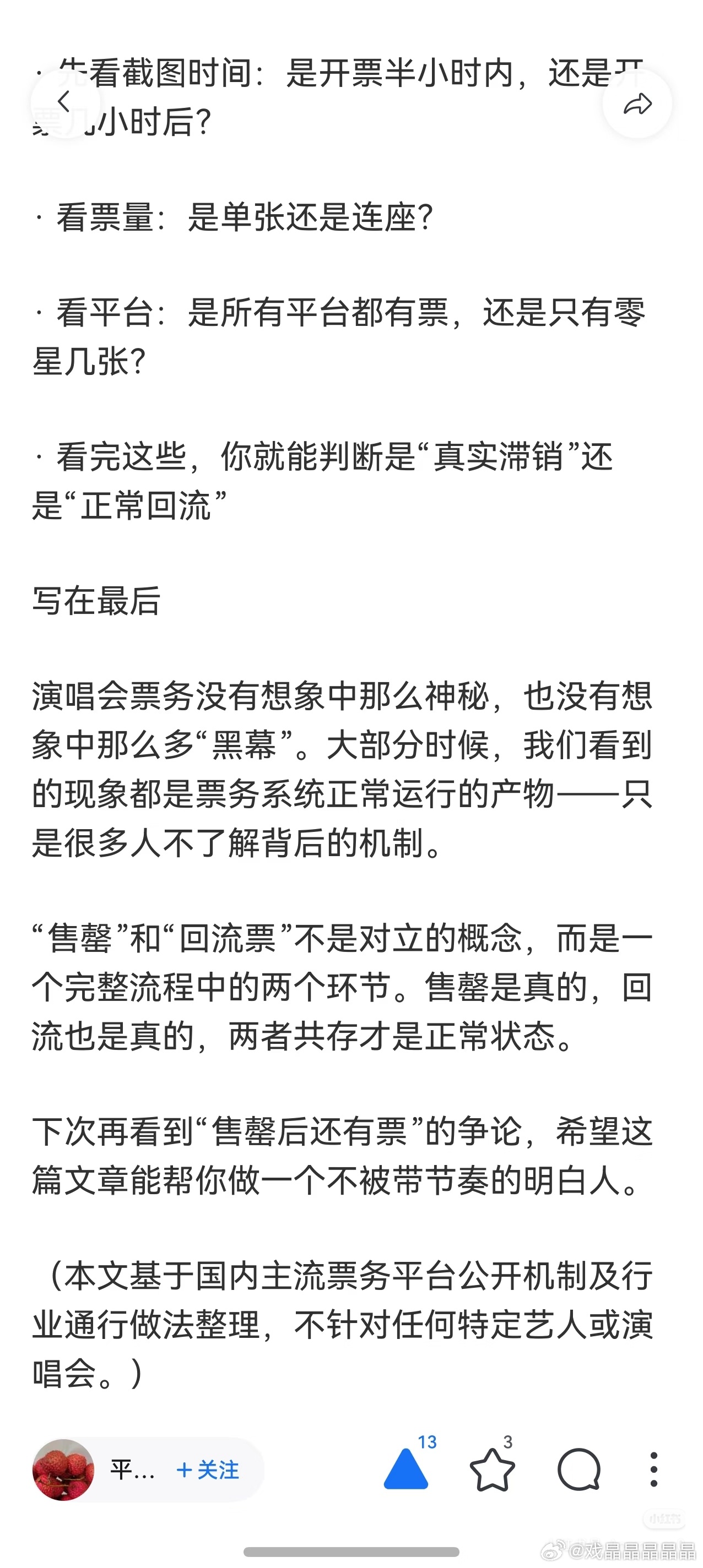 找到一篇很好的科普演唱会票务文,什么叫做售罄?什么叫做回流票?省得有些粉圈的粉丝不懂,拿着回流票截图瞎嚷嚷。