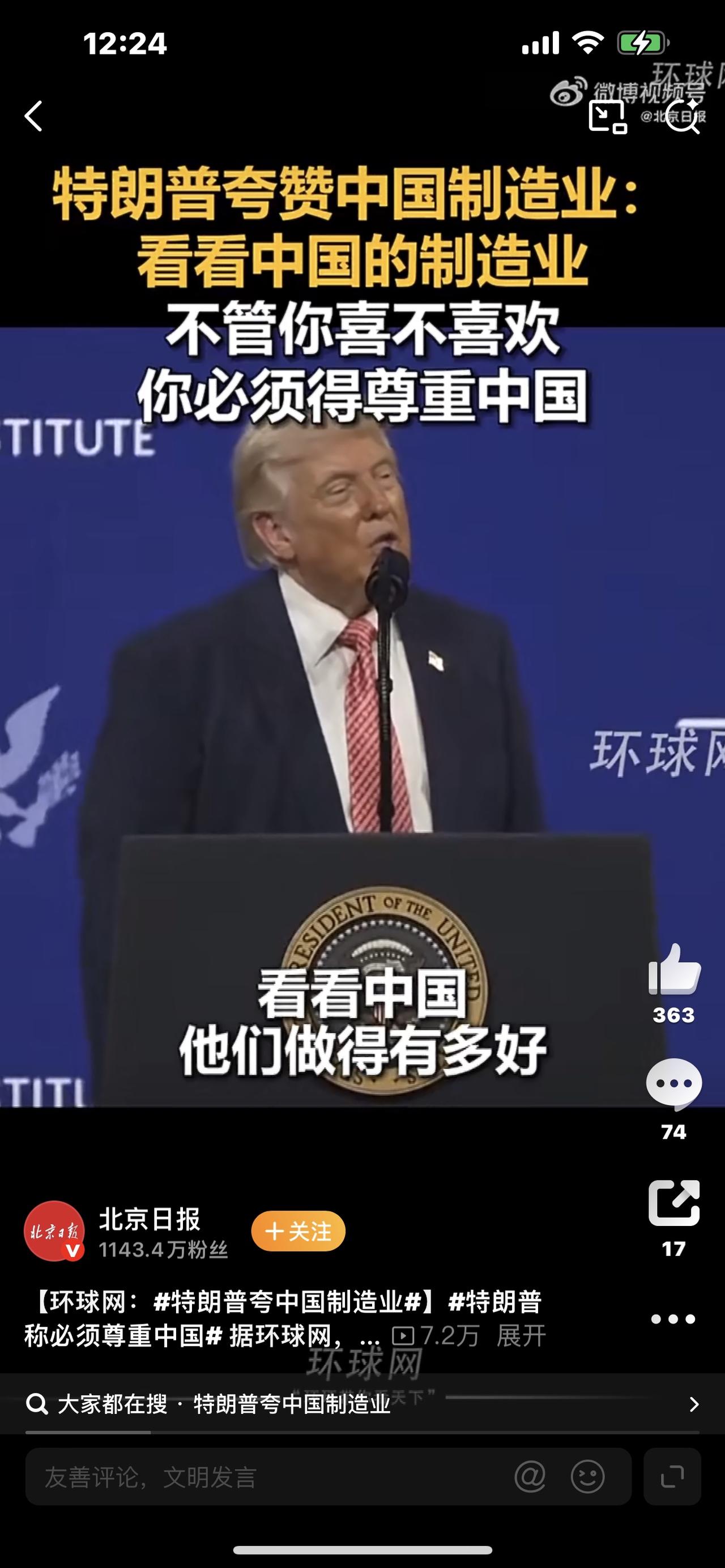 特朗普突然改口:必须尊重中国!背后真相太现实 (今日头条爆款标题,自带流量) 你敢信吗?一向对华强硬的特朗普,最近竟公开表态:必须尊重中国! 这一句话,直接炸翻全球舆论! 多少人以为他又要放狠话,结果画风突变,打了所有人一个措手不及。 就在几年前,他还在搞贸易战、加关税、喊着“中国占美国便宜”,把中美关系搅得鸡飞狗跳。 怎么突然就变了? 真相很扎心: • 美国通胀高企、供应链断裂,离不开中国的物美价廉商品 • 全球经济复苏,中国是最大引擎,美国绕不开 • 台湾、经贸、科技等核心议题,没有中国配合,美国寸步难行 他嘴上再硬,身体也很诚实。 所谓“必须尊重中国”,不是心软,而是现实所迫、利益所驱。 更关键的是: 中国不吃“哄着来”那一套。 我们要的从来不是口头尊重,而是平等相待、互不干涉、合作共赢。 你尊重我,我们敞开大门谈;你搞霸凌,我们坚决奉陪到底。 这世界,从来都是实力说话。 特朗普的“尊重”,是中国一步步拼出来的底气。 从贸易战到芯片封锁,从南海到台海,中国越挫越强。 今天的中国,有资格、有能力,让任何国家不得不尊重。 大国博弈,从来不是喊口号。 你强,世界才会对你和颜悦色;你弱,连公平都谈不上。 为中国的硬气点赞! 为我们的底气骄傲! 这才是大国该有的样子!欧洲对特朗普 特朗普发难 特朗普争议发言 特朗普怒斥美国 特朗普20条