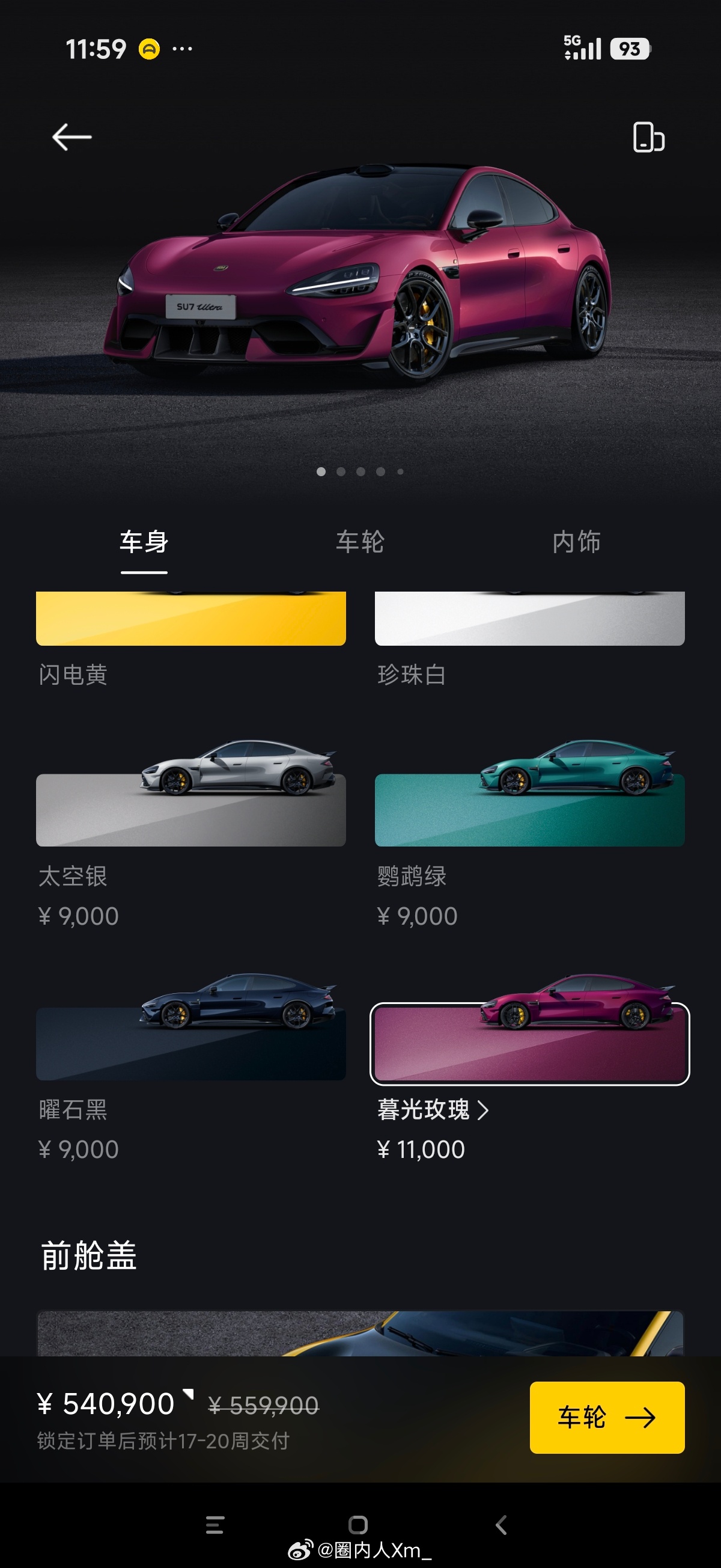 小米SU7Ultra新增暮光玫瑰车漆这个玫瑰色太好看了,以前是定制颜色,现在下放