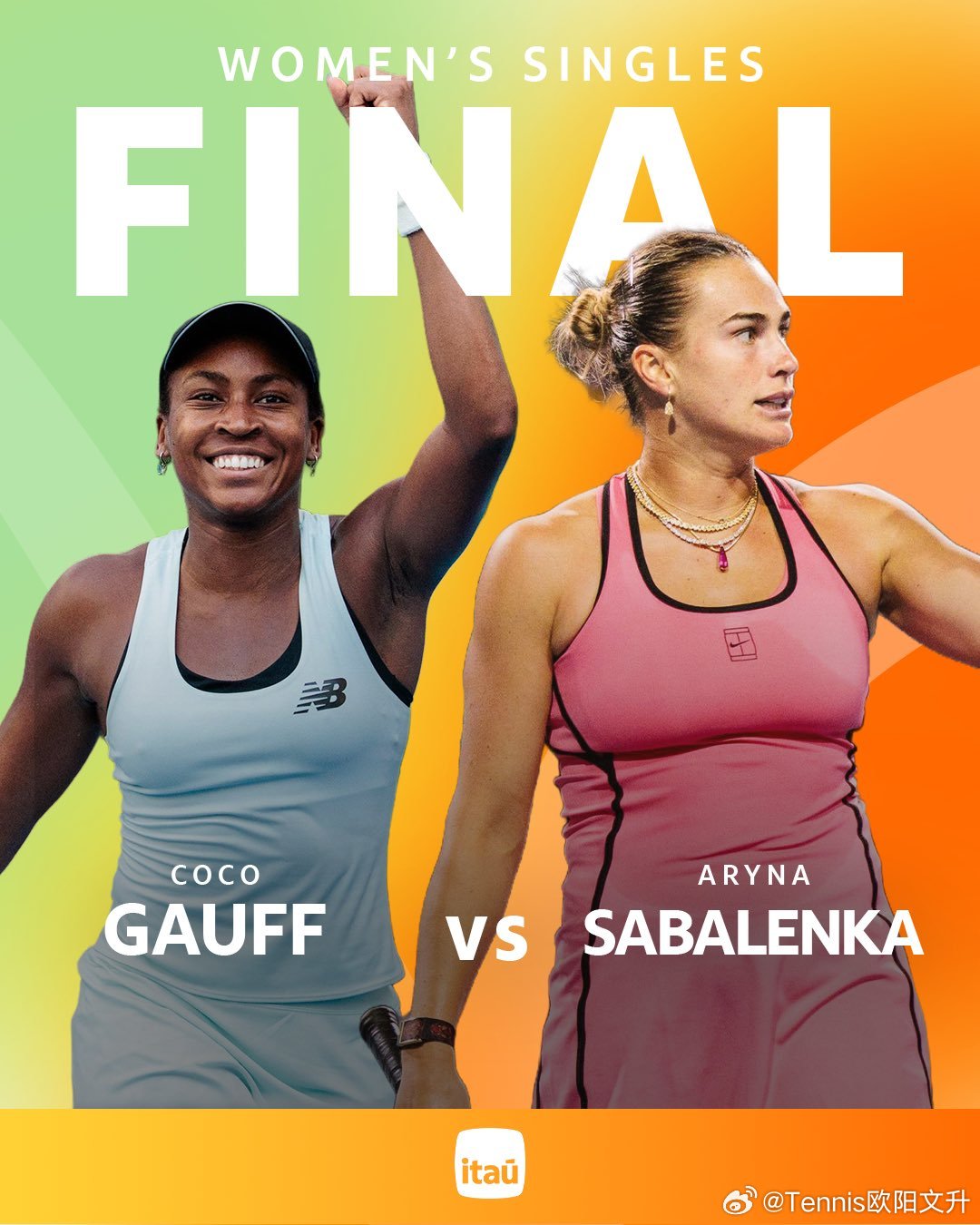 🔵迈阿密决赛对阵💃🏻女单🇧🇾萨巴伦卡vs🇺🇸高芙🕺🏻男单🇮?