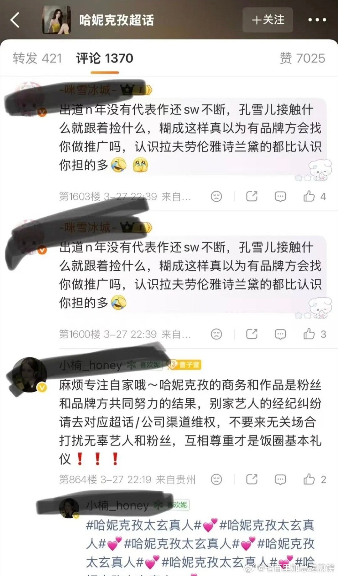 孔雪儿粉丝冲哈尼克孜商务博的导火索:几天n条小广告,美名其曰这些品牌已经是精挑细