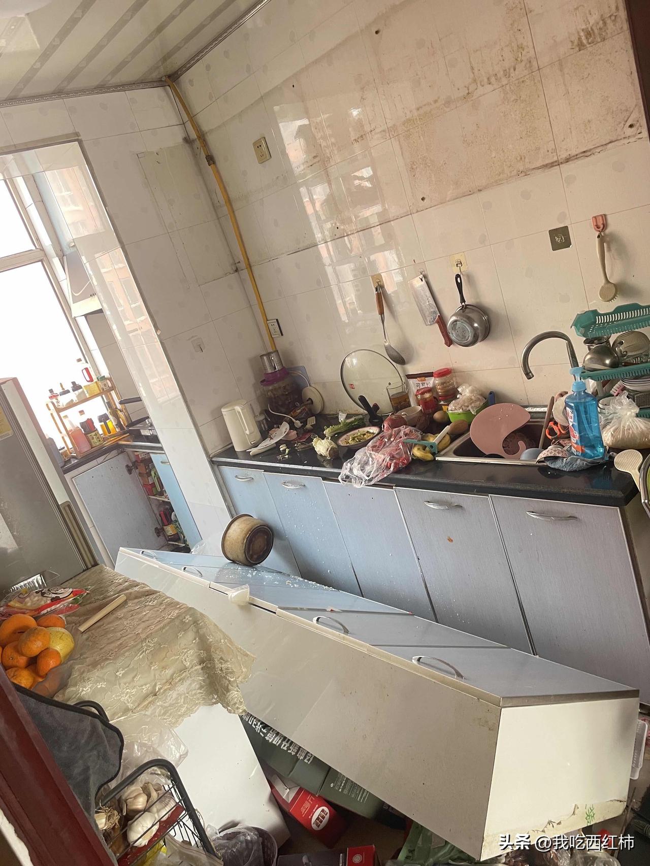人在家中坐,祸从天上来!这都能掉下来 哐当一声,就是各种玻璃瓷器碎掉的声音,好吓人,还以为地震了呢!再一缓神不是地震,赶紧出来一看整个橱柜都从墙壁上掉下来了!这比中彩票几率还大,就问谁家好好的橱柜能从墙上整体掉下来!