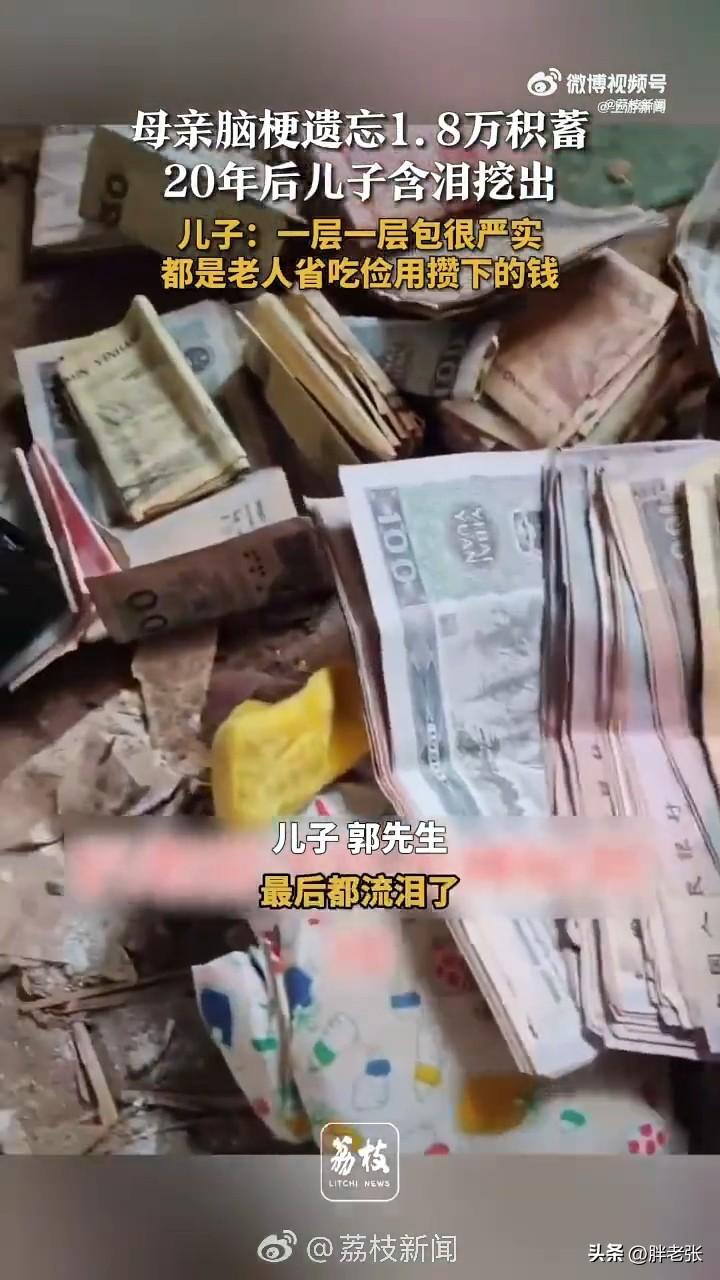男子挖出被遗忘20年的“时光胶囊”,打开后感慨万千! 近日,在河南三门峡,郭先生在拆除年久失修的老宅时,从地下挖出一个沉甸甸的“包裹”。 打开一看,竟是母亲20多年前省吃俭用攒下的18000余元。 郭先生介绍说,这是父母种地卖粮、喂猪、养羊,一分一厘攒下这笔钱。 在母亲60岁那年突发脑梗后,记忆模糊,将这笔积蓄遗忘了,后来病好了就记得还有一笔存款,但是放在那里真的记不清了。 现在这笔钱找到了,父母也是身体健康,这笔钱交给老人也算是了却心底的遗憾。 这18000元不要花了,留存好吧,这是一份珍贵的记忆,里面满满的都是父母的辛劳和对这个家的爱。 而且现在这钱基本都不流通了,珍藏起来更有意义!