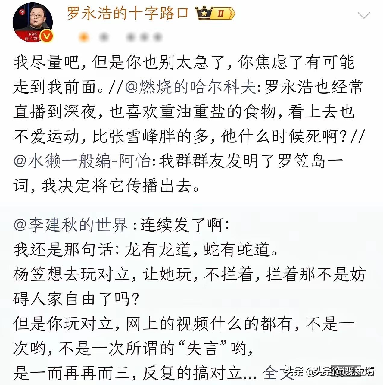 这事儿的起因,简直让人三观炸裂。张雪峰老师因为身体抱恙和家庭变故暂停直播,这本是人之常情。可偏偏有一群“心理扭曲”的网友,不仅不关心,反而因为罗永浩也直播到深夜、饮食重油重盐、体型偏胖,就恶毒地揣测他“什么时候死”。