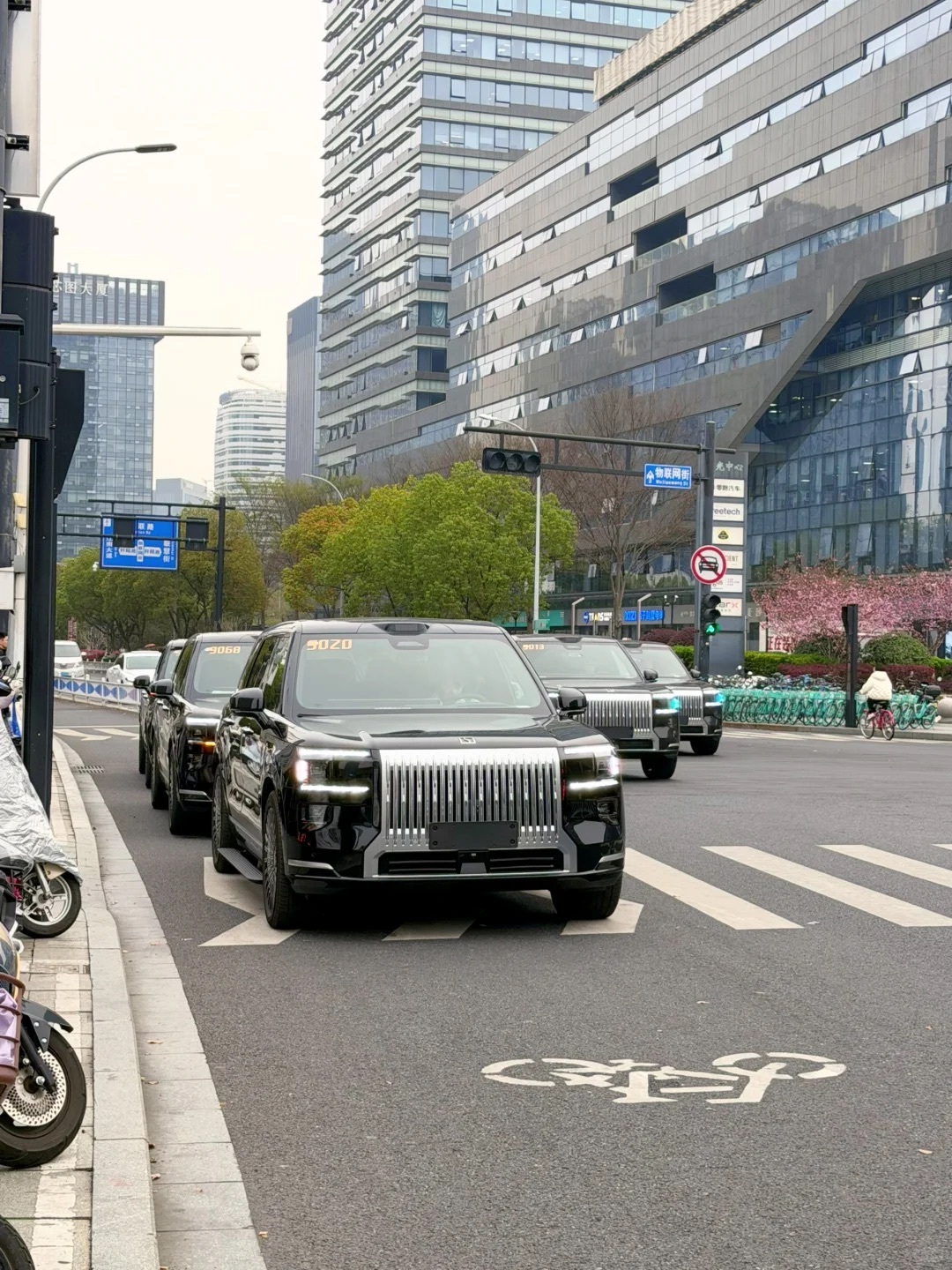 在杭州就是好,享福了三条车道全是吉利Robotaxi,极氪9X亮着小蓝灯,闪亮登