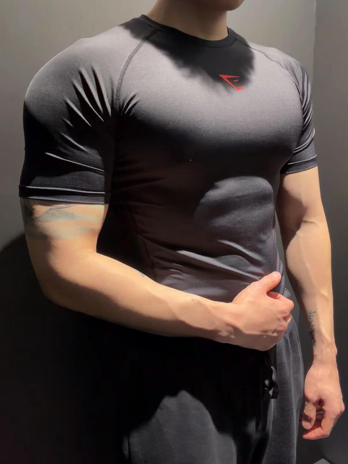 感觉你喜欢黑色。健身穿搭 男友臂了解一下 紧身黑t恤 肩宽