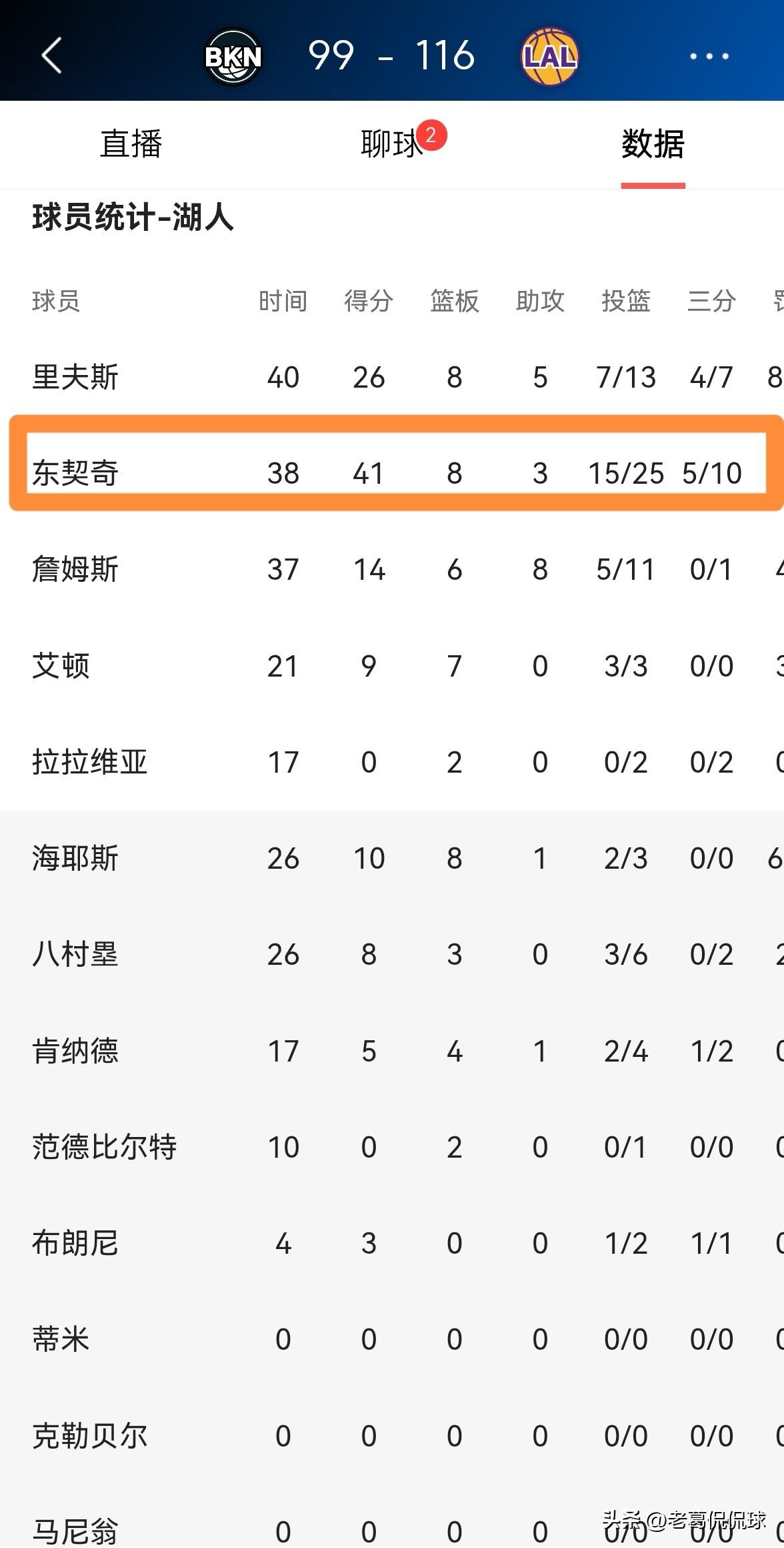 湖人巨星詹姆斯真是抢不过队友东契奇!在今天湖人主场以116:99大胜篮网的比赛中,东契奇爆砍41分8篮板3助攻,并且在赛后荣登球队的赢球海报。 实事求是的说,以东契奇在本场比赛中的无解表现来看,他能够成为球队赢球海报的封面人物是毋庸置疑的。以詹姆斯今天的表现来看,詹姆斯肯定抢不过东契奇。