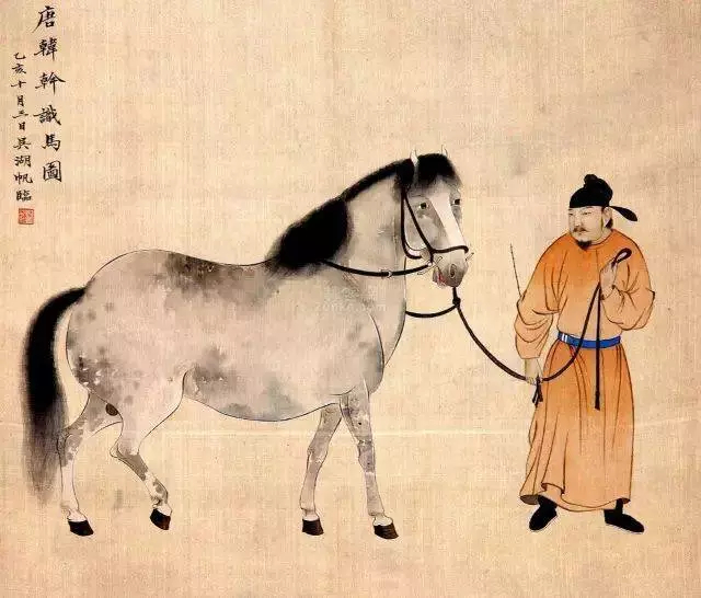 吴湖帆 仿唐韩幹识马图。吴湖帆作品绝大部分画作都是临摹、仿作、或是拟古代诸家笔意。大量仿摹,源之于吴湖帆家藏名画和其特殊的职业地位。这就是中国风遇见艺术