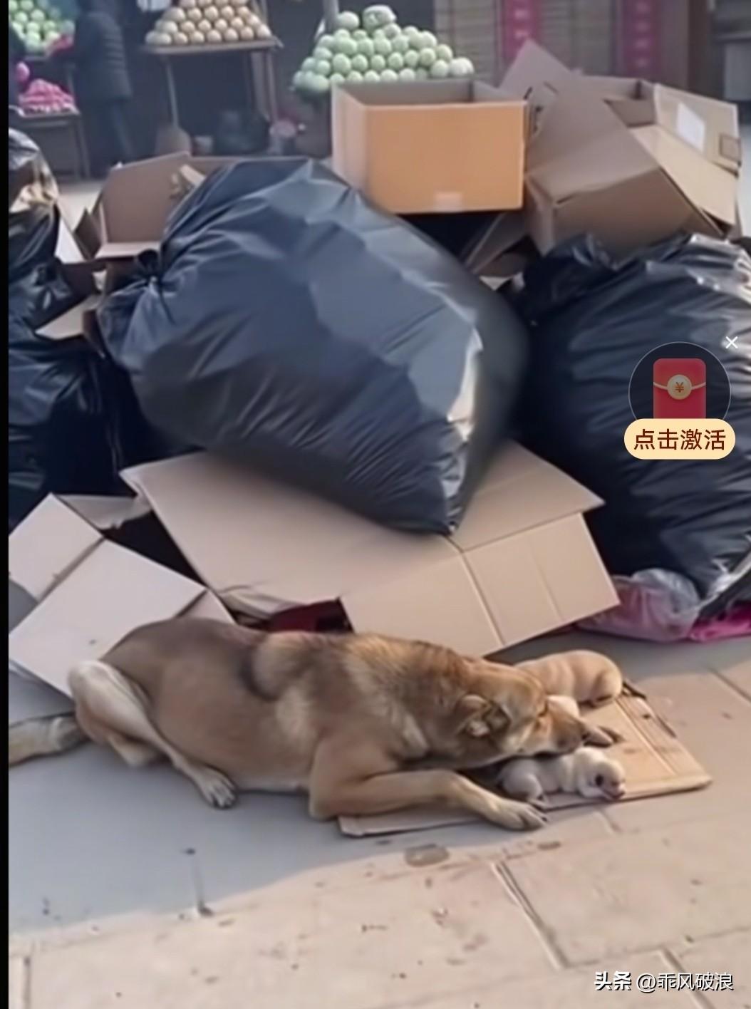 还在坐月子的流浪狗妈妈,为了孩子,十分礼貌地向摊贩老板讨口饭吃。没想到,摊贩老板竟拿起扫把朝它头上打去。无奈之下,狗妈妈只好回去护着孩子。狗妈妈和孩子