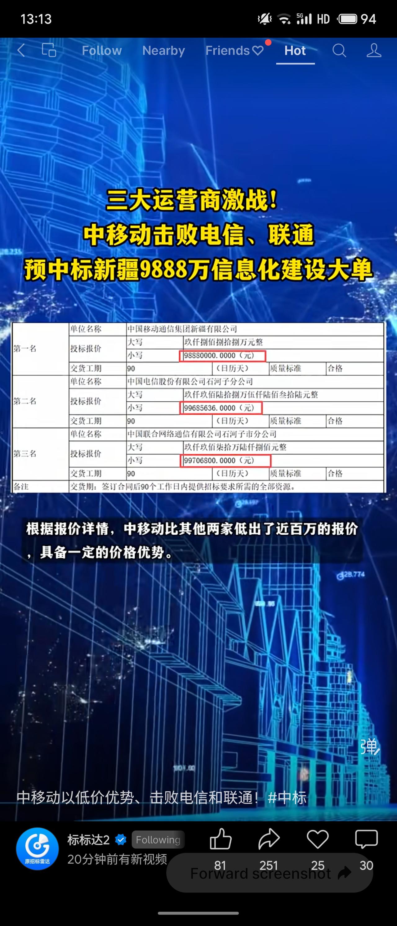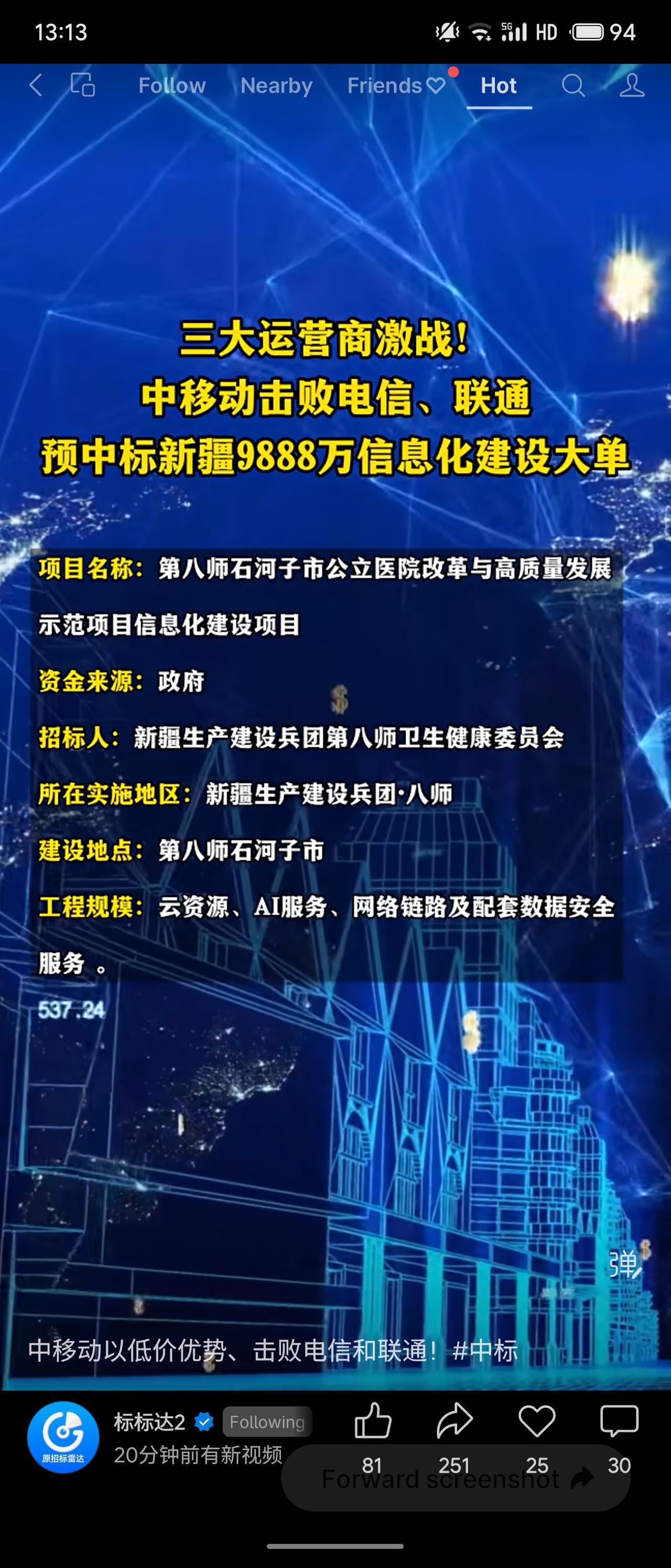 三大运营商激战新疆信息化项目,中国移动击败电信、联通,以9888万元预中标第八师