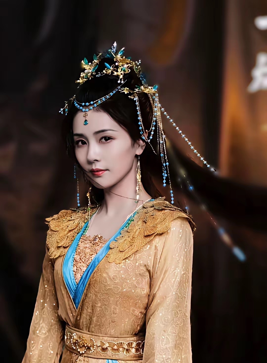 孙允珠婉秋梧桐淡棕朦胧单吊肩衣裙。