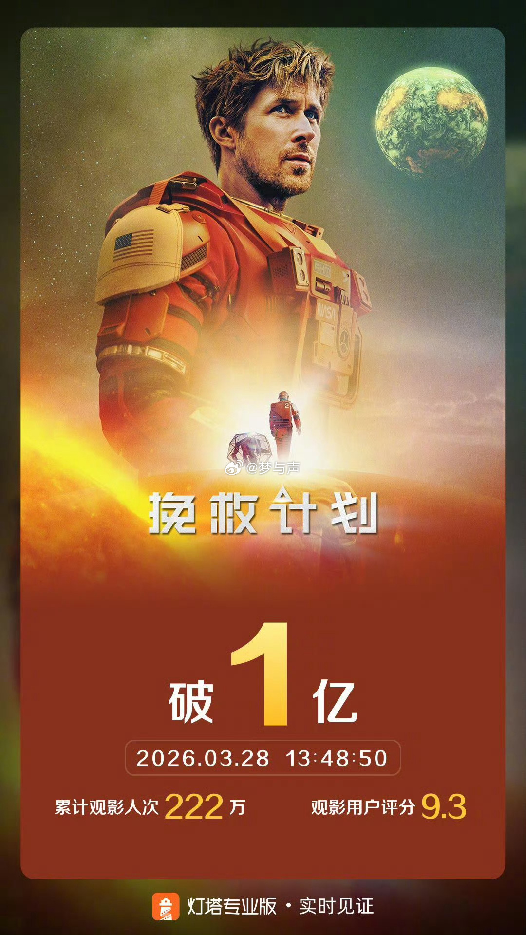 谁还没被《挽救计划》治愈到!挽救计划票房破亿 恭喜破亿,冰冷的宇宙里藏着最温暖的善意,剧情超赞,演技超棒,画面绝美!