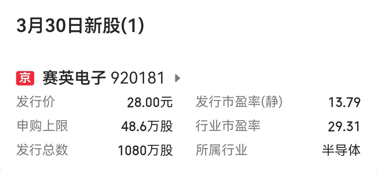 【下周A股市场有3只新股申购】 下周(2026年3月30日至4月3日)A股市场有3只新股申购,其中科创板、创业板、北交所各1只。 发行时间安排:周一2只,周五1只。 其他发行事项,因数据不全,请阅读当日相关公告。