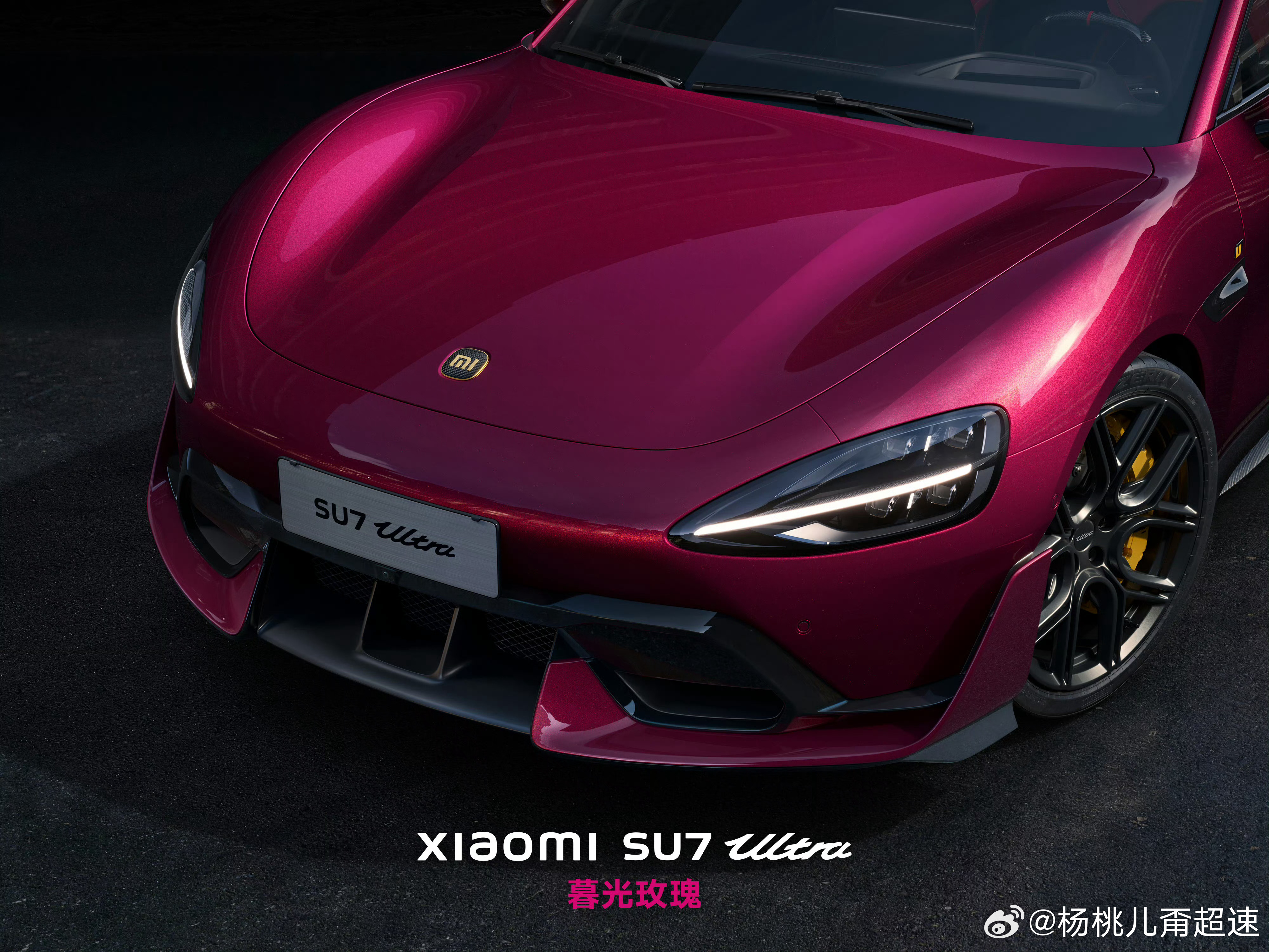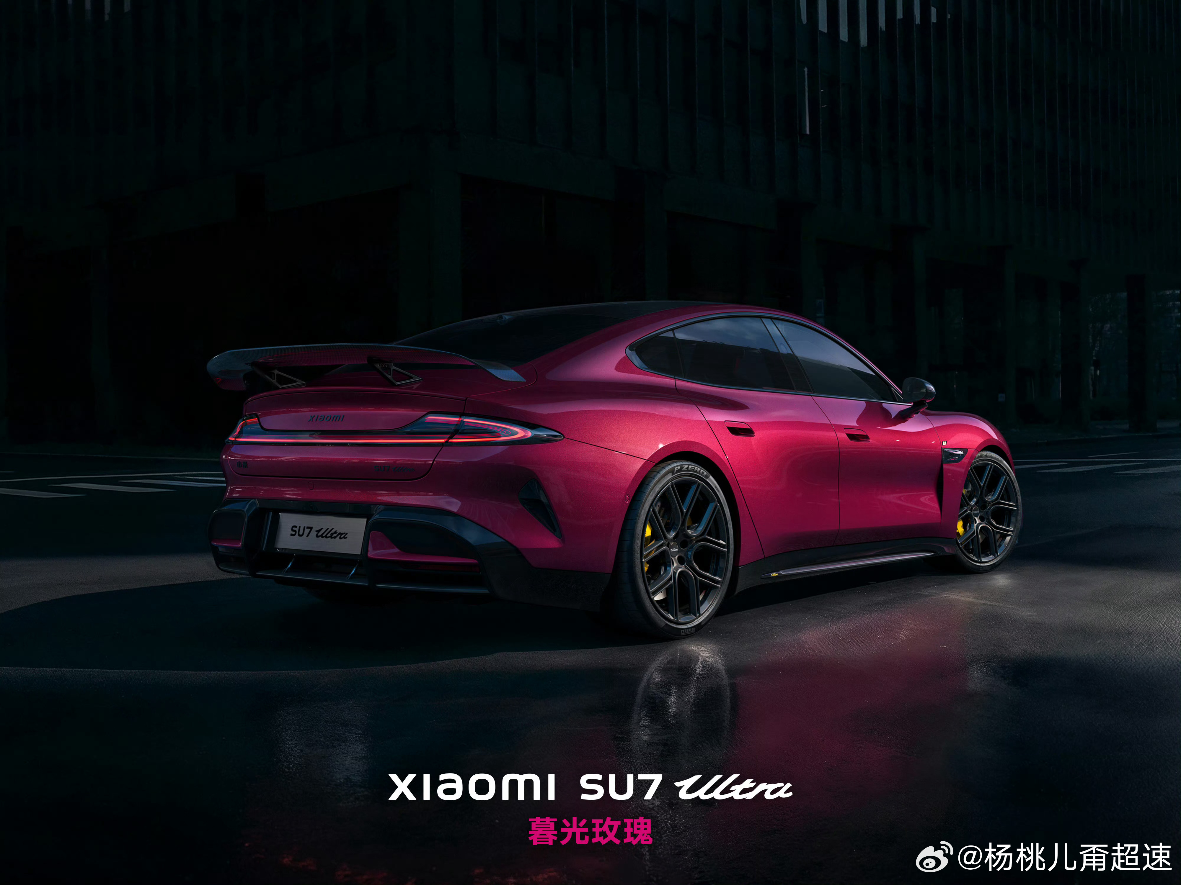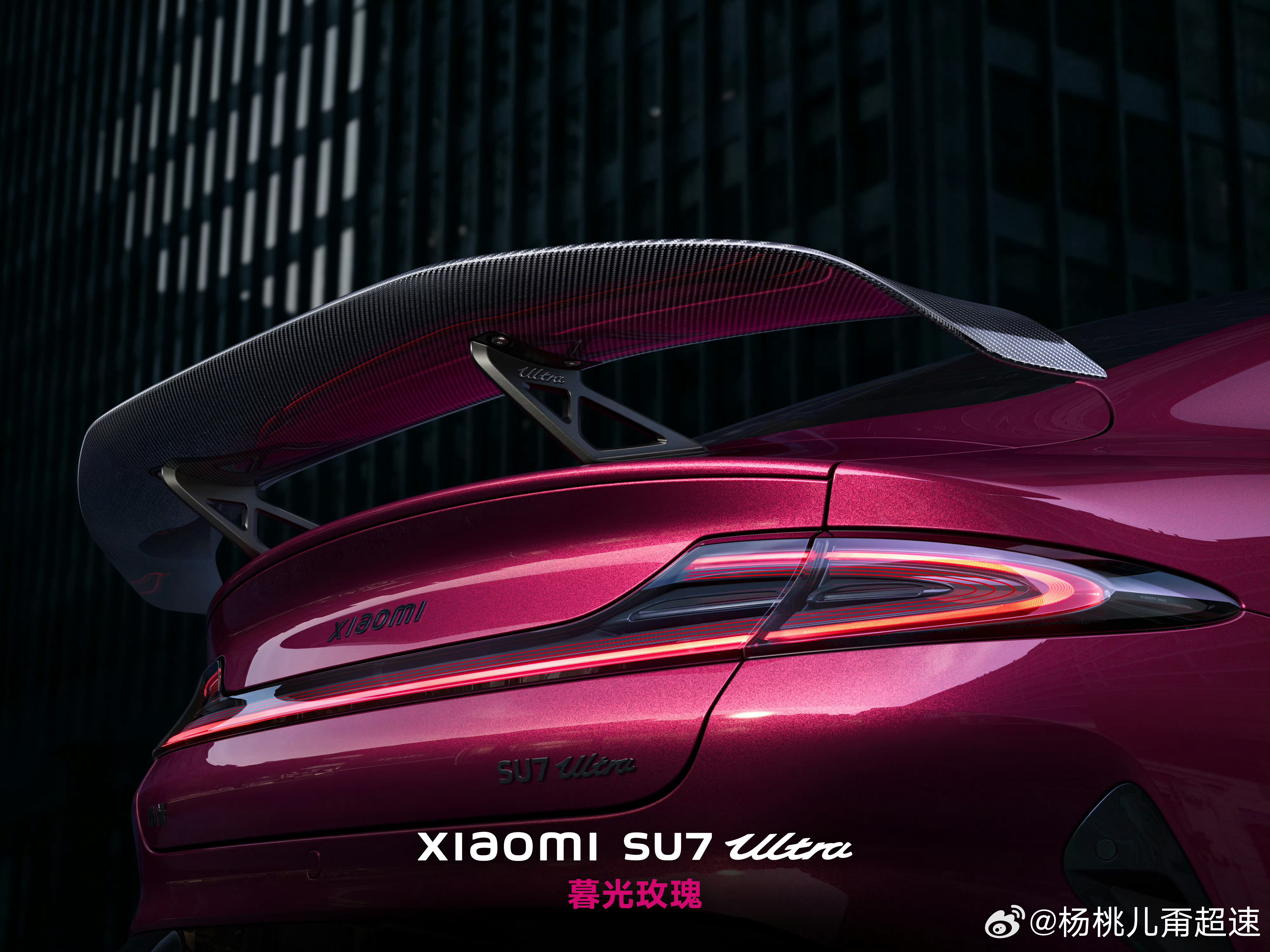 小米SU7Ultra新增暮光玫瑰车漆小米SU7 Ultra又出新颜色了「暮光玫瑰
