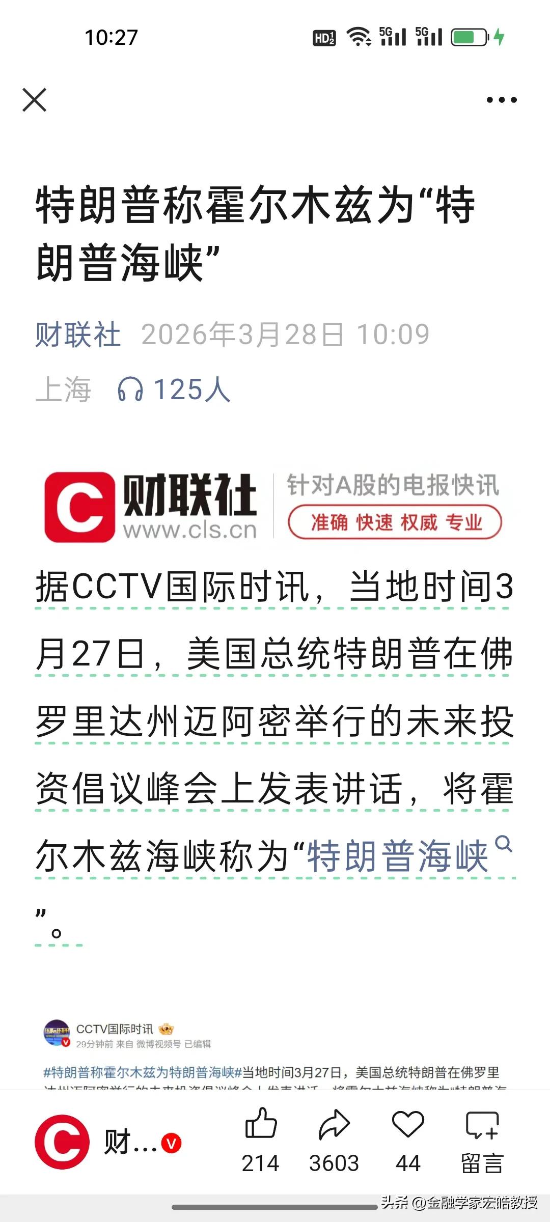 特朗普的“自恋狂欢”:从美元到海峡,全要叫Trump。 特朗普这辈子最大的心愿要达成了,在美国建国250周年之际,他打破165年美元传统,特朗普头像+签名要印上纸币,美财长还强夸“彰显成就”;今天又把霍尔木兹海峡改名“特朗普海峡”,连全球能源命脉都要刻上他的名字。 不知道是不是特朗普头像要印在250面值纸币上,这波操作本质是把个人崇拜焊进美国符号里:一边是全世界拱火,让全世界人民为美债买单,美国国内通胀高烧不退,美国老百姓怨声载道,一边是疯狂地搞个人崇拜,所谓“总统成就”,不过是一场自恋的政治表演。 当美元印上他的脸,当海峡冠上他的名,美国的霸权自恋已昭然若揭——这哪里是纪念,分明是把“美国优先”刻成了全球的枷锁。