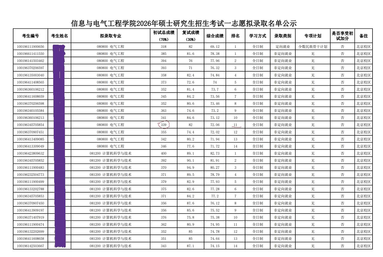 复试非常重要!中国农业大学电气工程(080800)专业复试,初试倒数第5名逆袭成功上岸,第10名却意外落榜! 2026年研究生招生复试正在紧锣密鼓地进行中,与往年一样,逆袭成功的例子一个接一个。这些例子再次提醒正在准备复试的考生们,不管你初试排名怎么靠前,复试很重要!!!切不可掉以轻心。 近期,中国农业大学信息与电气工程学院公布了一志愿复试拟录取名单。在电气工程(080800)专业,20名考生参加了复试,拟录取14名。结果,初试成绩排名第10的考生意外落榜了,而初试成绩倒数第5的考生,最终排名第11,成功上岸。这个例子再次告诉大家,初试不是全部,成绩再好也可能会落榜,相反进了复试,成功逆袭的也是大有人在!!!
