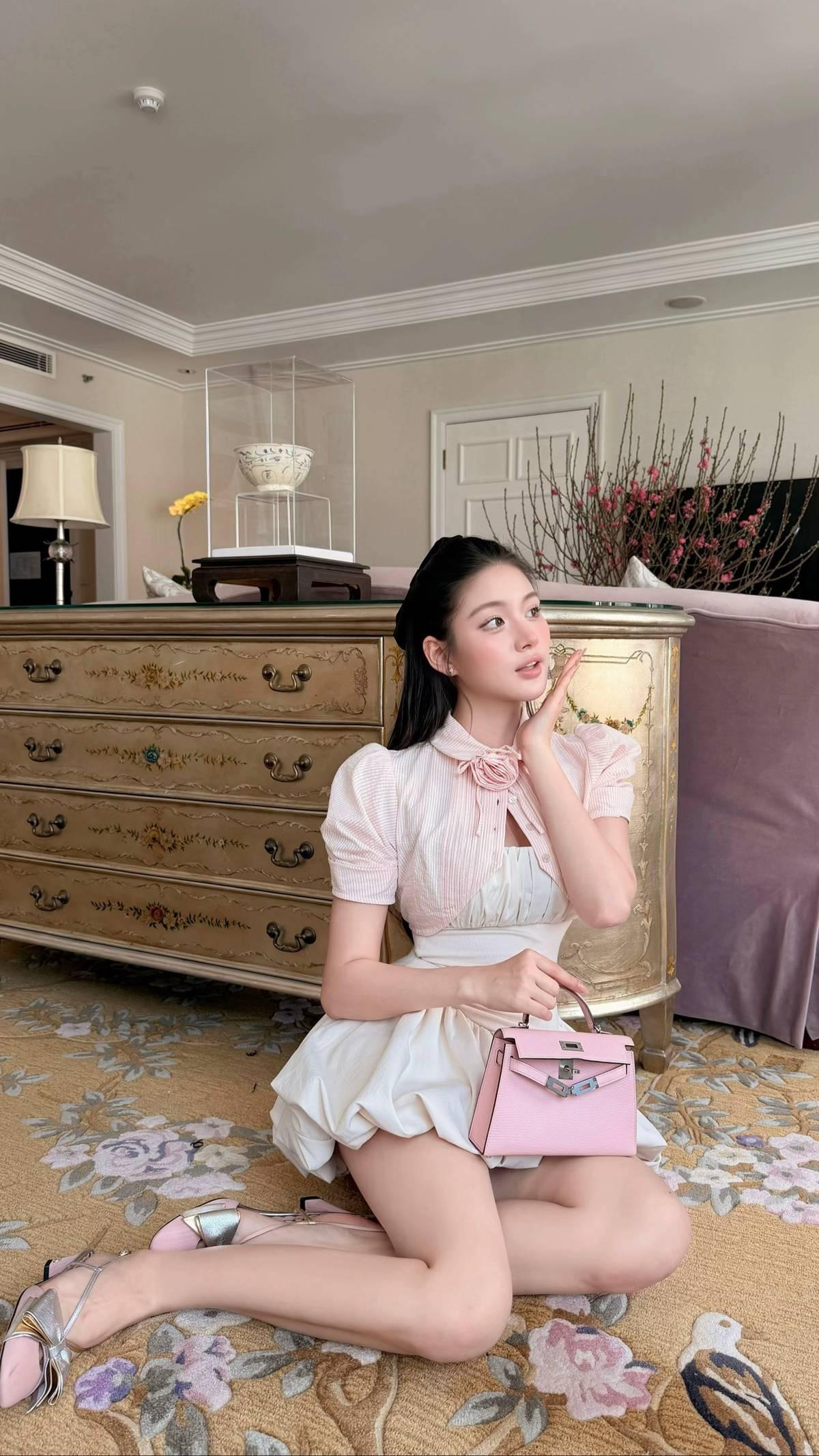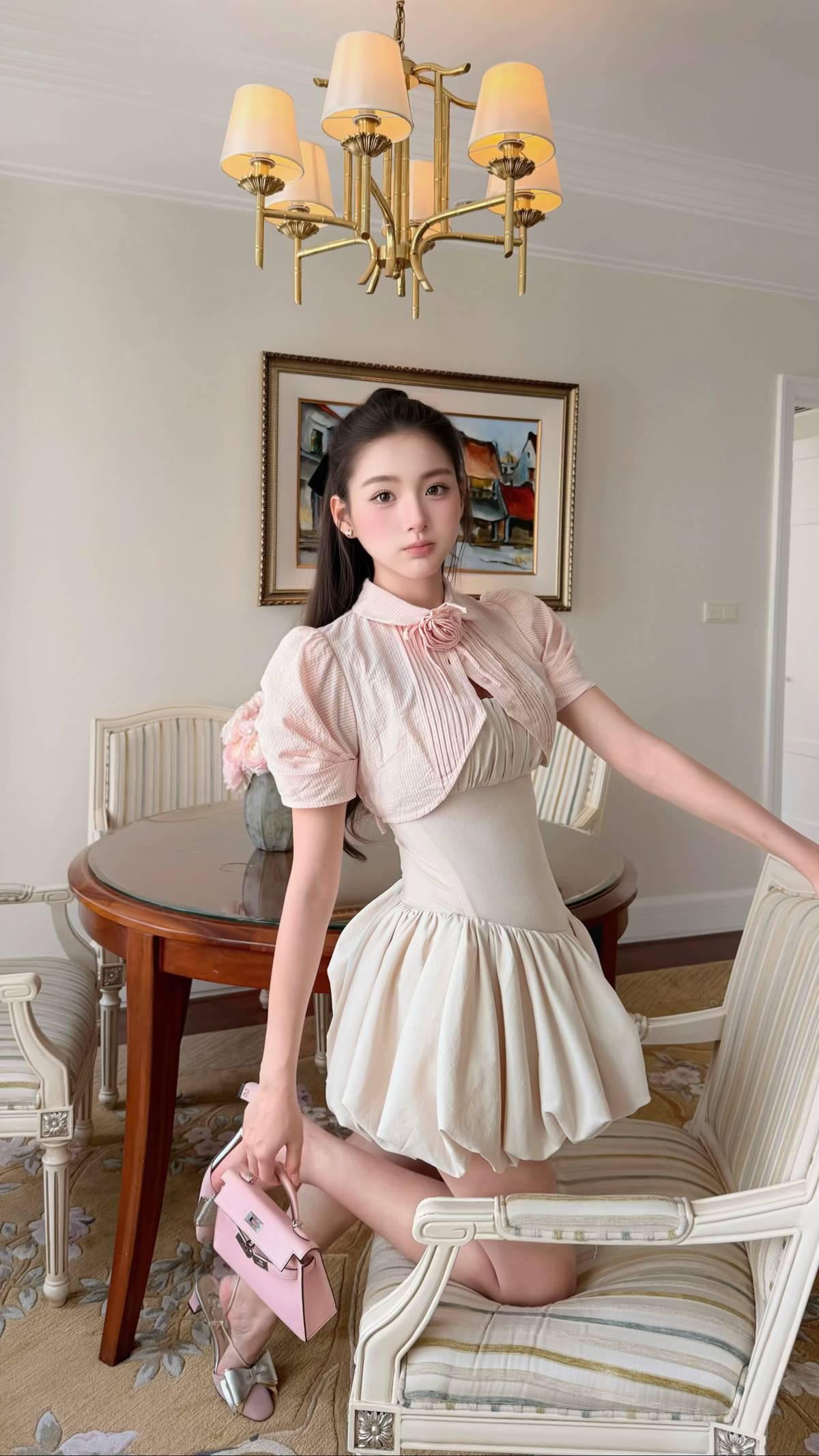 孙允珠甜美兔女郎,优雅连衣裙,甜美可爱,时尚穿搭。