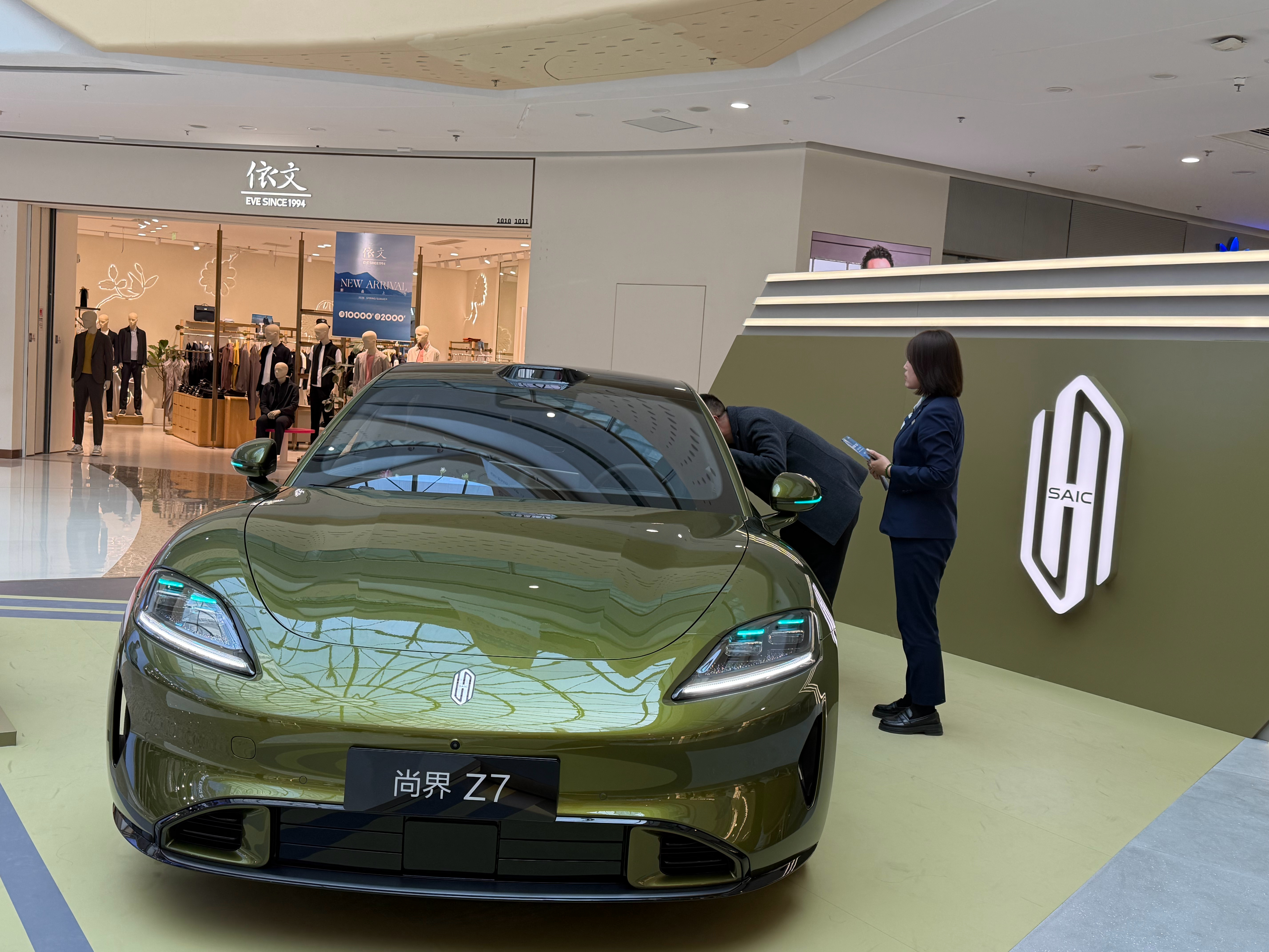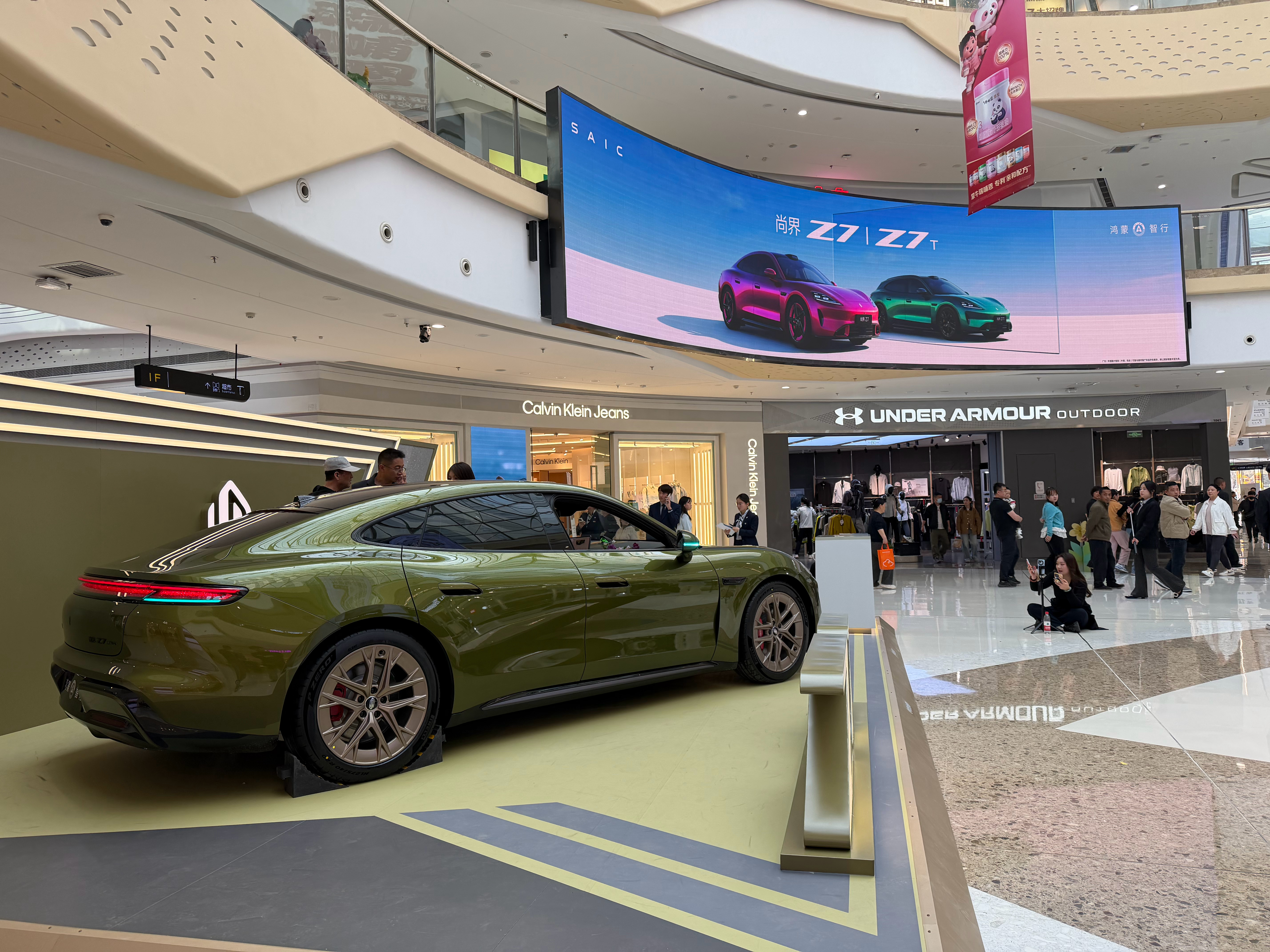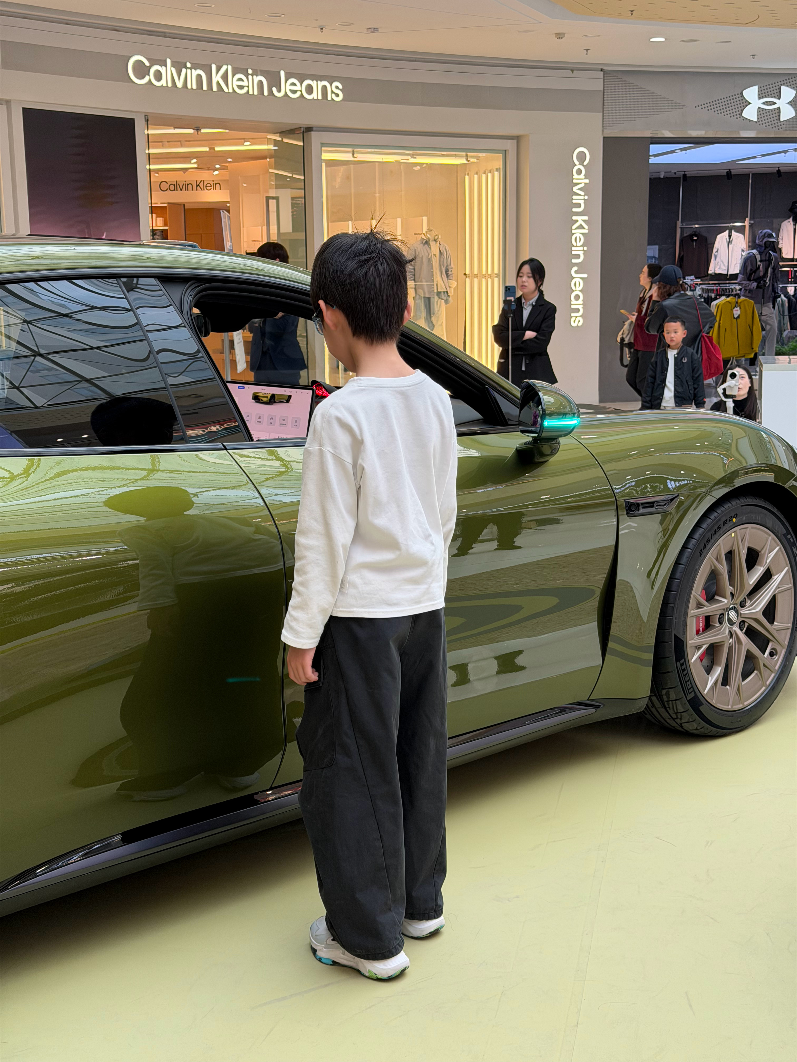 摆在商场C位,吸引不少人围观来看,还不能进车内,不错透过窗户大概看了一下内部做工,精致感也提升不少。整车走的就是年轻活力路线,车身低趴动感,20万级轿跑的很好选择了,很期待开起来的体验,后面有机会试驾感受下。