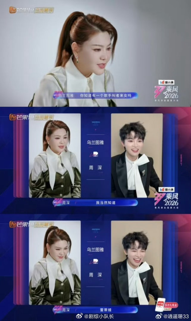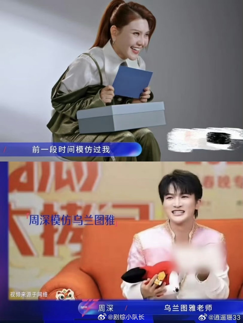 周深你好响周深贴脸乌兰图雅 周深连麦乌兰图雅,确实太会整活了。对着人家唱“蒙古之花”,唱完一首换一首,火辣辣的情歌、站在草原望北京、蕾蒂娅,最后还来了段改词版达拉崩吧。现在满脑子都是“蒙古之花乌兰图雅”。