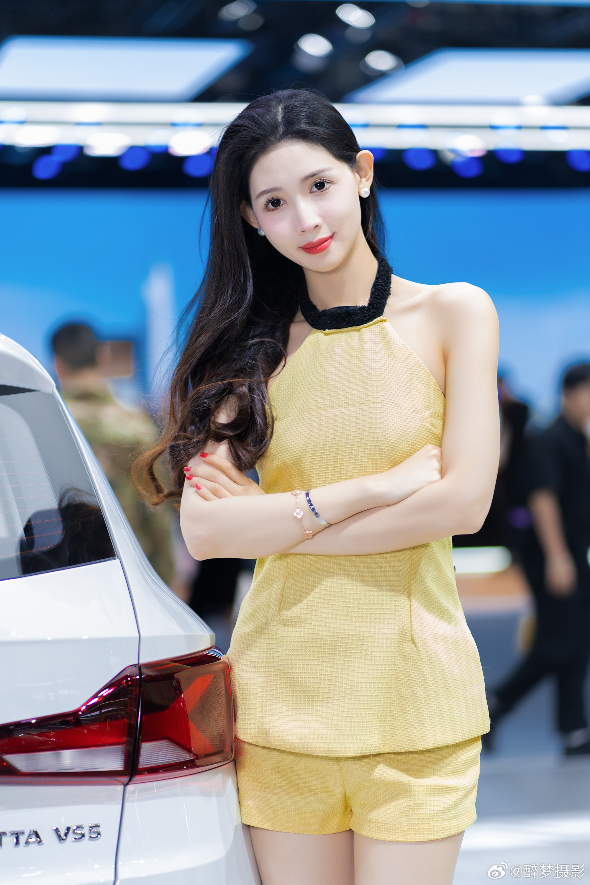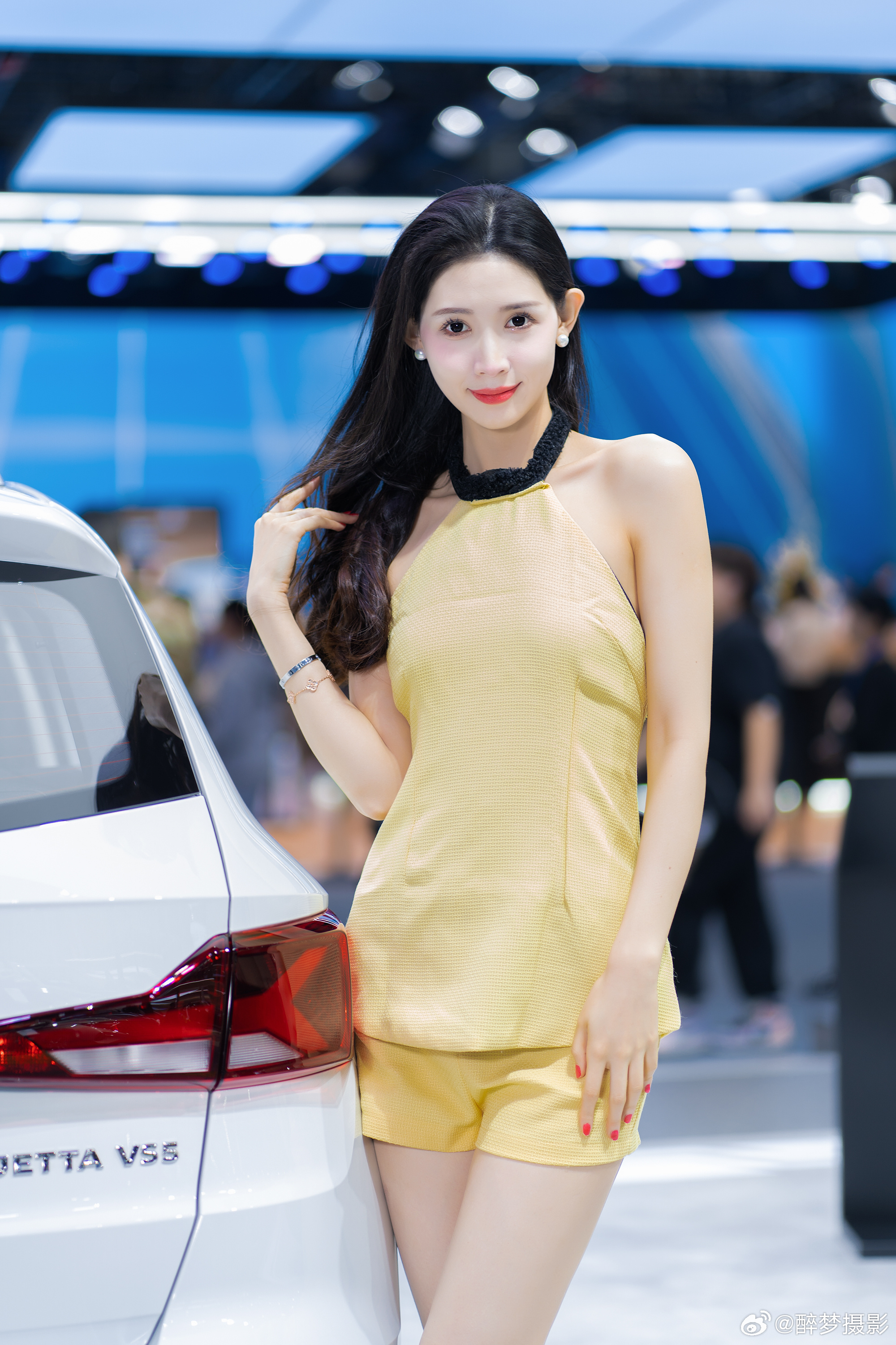 黄衣佳人邂逅捷达VS5,车展现场的优雅与动感完美碰撞。模特:精灵乐宝宝活动:广州