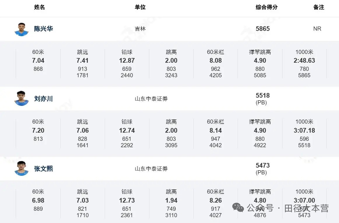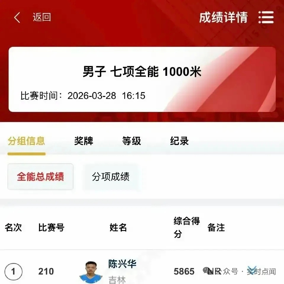 2026全国室内田径锦标赛,陈兴华以5865分强势登顶男子七项全能,打破尘封纪录,职业生涯新巅峰!