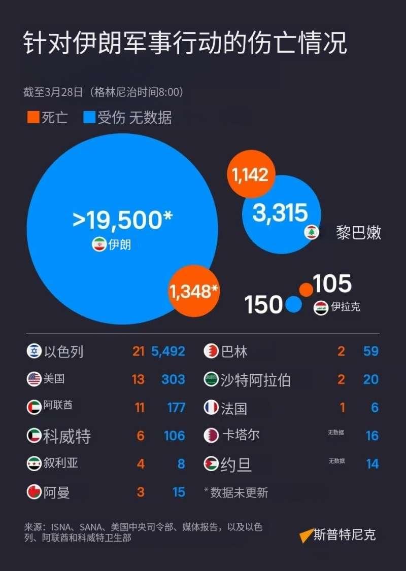 俄罗斯卫星通讯社做了一个美以伊冲突爆发以来各方伤亡情况!美以伊冲突