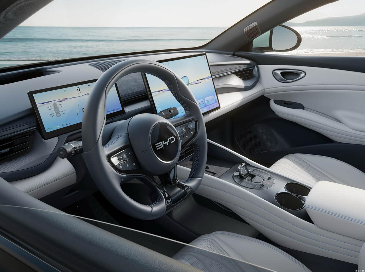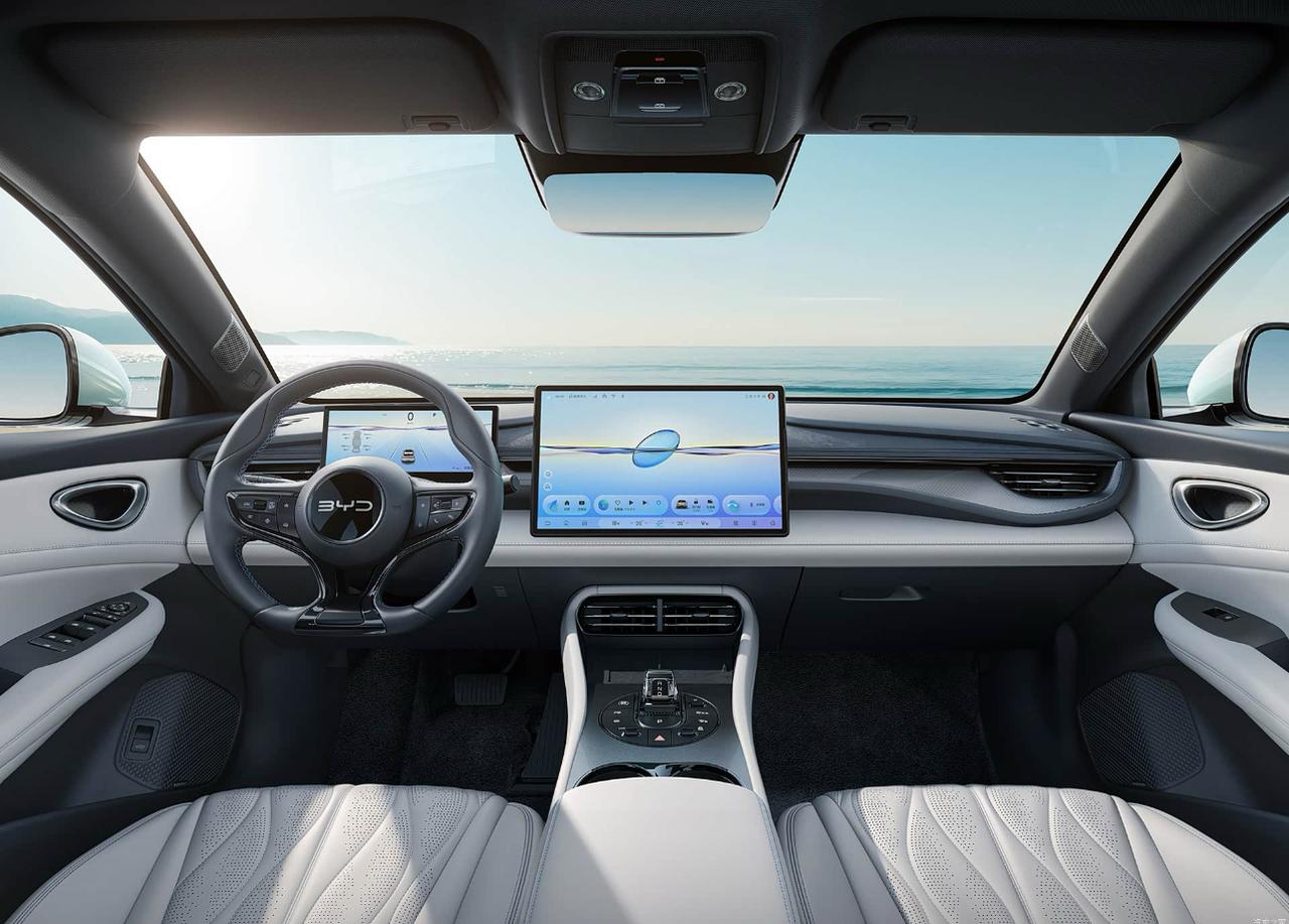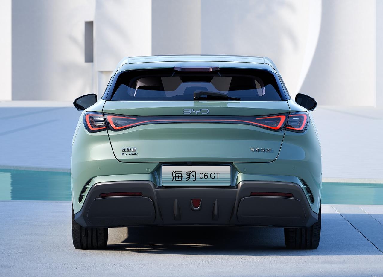 比亚迪海豹06GT,车身风阻系数为0.253Cd,采用溜背车身与无框车门设计。 车辆车身尺寸为4630mm×1880mm×1490mm,轴距2820mm,提供单电机后驱、双电机四驱两种驱动形式。 605km续航单电机后驱版本,电机最大功率165kW,峰值扭矩330N·m,官方0-100km/h加速时间7.5秒。 双电机四驱版本综合功率310kW,峰值扭矩510N·m,官方0-100km/h加速时间4.9秒。 车辆底盘配备前双球头麦弗逊独立悬架、后五连杆独立悬架,部分版本搭载FSD可变阻尼减震器。 605km续航版本搭载72.96kWh磷酸铁锂电池,CLTC工况下纯电续航里程为605km。 车辆30%至80%电量快充时间约20分钟。 车内配备15.6英寸自适应旋转悬浮屏,搭载DiLink智能座舱交互系统。 车辆支持50W无线快充功能,车内共有24处储物空间。 中高配版本配备智能驾驶辅助系统,包含高速领航、自动泊车功能。 (图片来源:比亚迪海豹06GT官方)
