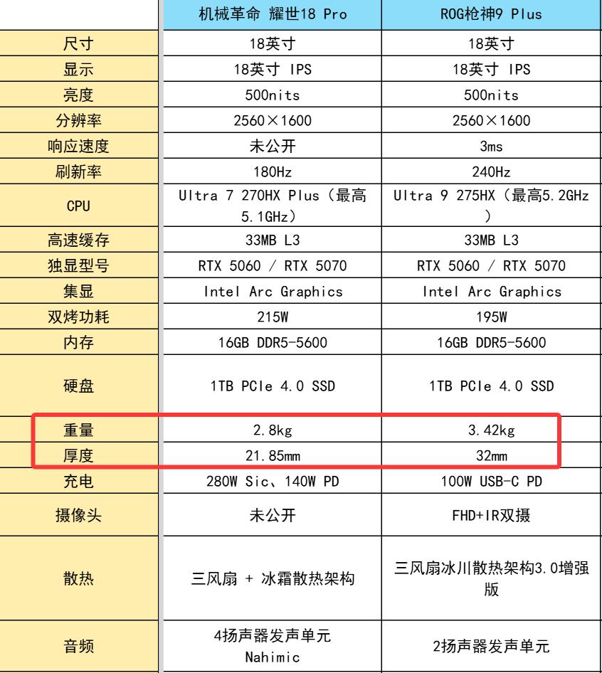 第一次买 18 寸大屏游戏本,本来冲着 ROG 枪神 9 Plus 的名气去的,结果线下拎了一下直接劝退,转头入了机械革命耀世 18 Pro,真的打开新世界大门! 之前总觉得游戏本配置至上,完全忽略了重量这个致命点!给你们看最直观的对比: ✅ 耀世 18 Pro:2.8kg,厚度 21.85mm ❌ ROG 枪神 9 Plus:3.42kg,厚度 32mm 差了快一斤啊朋友们!我一个女生,平时要背着电脑去图书馆、去朋友家开黑,枪神 9 Plus 装包里走十分钟肩膀就酸了,耀世 18 Pro 背一下午都没什么负担! 而且都是 18 英寸的大屏,该给的配置一点没差: Ultra 7 级处理器 + RTX5070 显卡,180Hz 高刷屏,日常打 3A、做设计完全够用,甚至耀世的双烤功耗 215W 比枪神的 195W 还要猛! 最关键的是,价格还比枪神香太多了!真的把 18 寸大屏旗舰做到了主流价位,完全不是噱头! 新手买游戏本真的别只盯着配置看了!重量和便携性才是你日常用不用得下去的关键!如果你和我一样,想要大屏爽感又不想被重量绑架,耀世 18 Pro 真的闭眼冲! 游戏本推荐 机械革命耀世18Pro 大学生游戏本 大屏游戏本