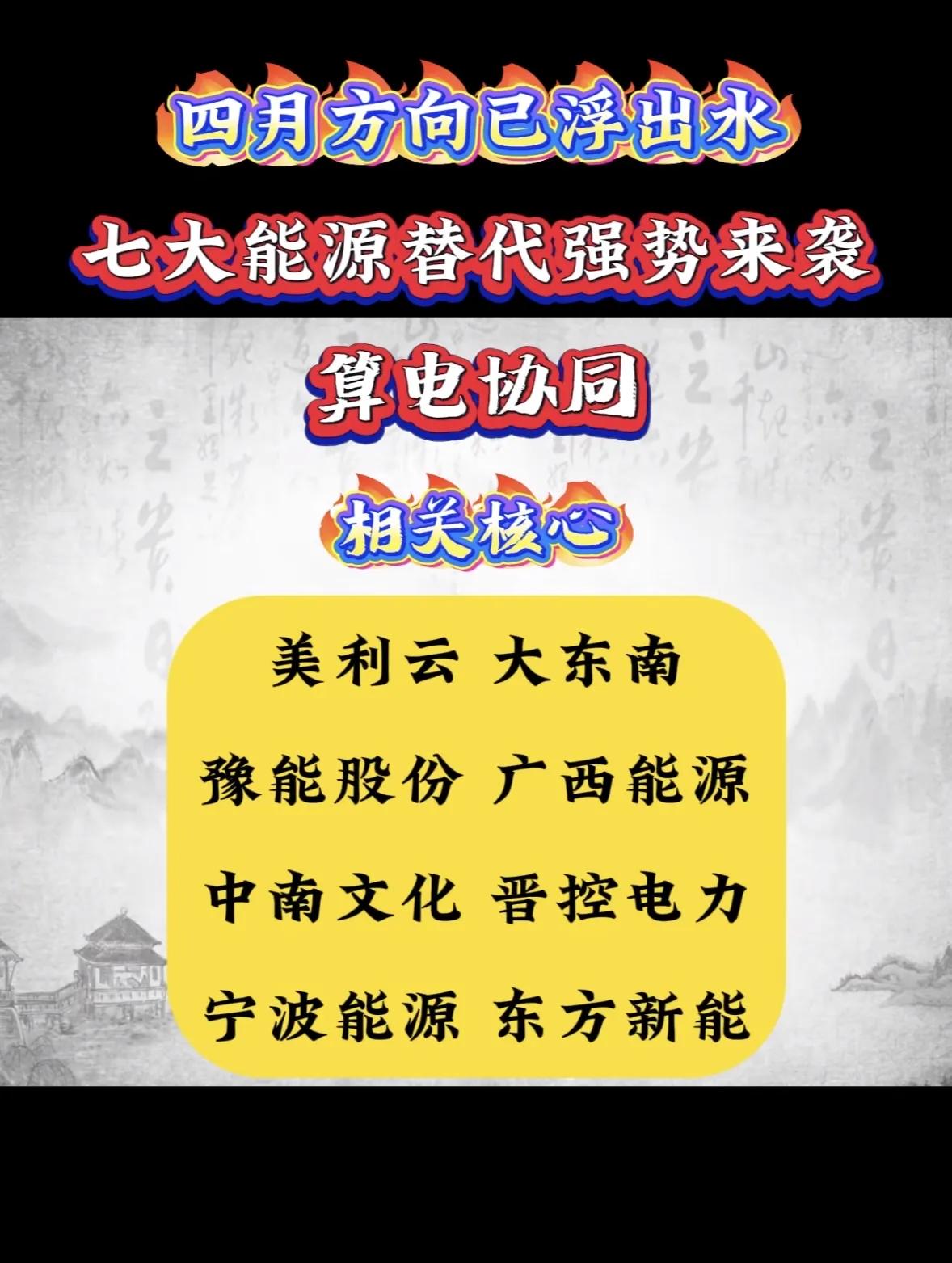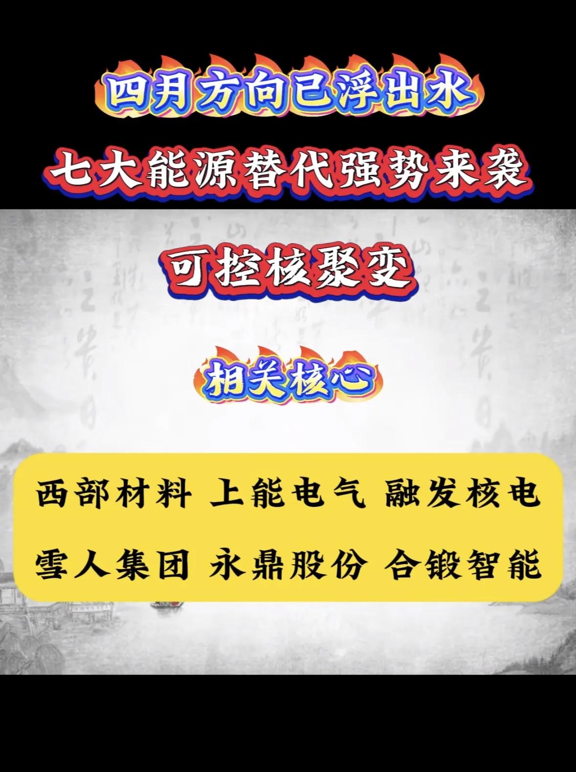 以下是各细分赛道的详细解析: 锂电概念 - 核心标的:赣锋锂业、天齐锂业、融捷股份、石大华胜、天赐材料、海滨能源 - 解析:该板块聚焦锂电池产业链上下游,包括上游锂矿资源(赣锋、天齐)、中游材料加工(天赐材料)及设备/化工(融捷股份)。作为新能源汽车和储能的核心,锂电板块的波动通常与碳酸锂价格及下游需求紧密相关。 化工概念 - 核心标的:金正大、赤天化、金煤科技、六国化工、金牛化工、苏利股份 - 解析:涵盖化肥、煤化工及精细化工领域。这些企业多涉及基础化工原料及农业投入品,在能源转型过程中,部分化工企业也在探索绿色工艺和新材料替代。 有色金属 - 核心标的:紫金矿业、洛阳钼业、云南储业、翔鹭钨业、金威股份、中钨高新 - 解析:有色金属是能源替代和高端制造的基石。紫金矿业(铜金)、洛阳钼业(钴钨)等巨头具备全球资源布局优势;而钨、钼等稀有金属在光伏、风电及军工领域应用广泛。 算电协同 - 核心标的:美利云、大东南、豫能股份、广西能源、中南文化、晋控电力、宁波能源、东方新能 - 解析:这是“算力”与“电力”的结合体。随着AI大模型对算力需求的爆发,数据中心的能耗问题日益凸显,“算电协同”旨在通过优化能源供给(如绿电直供、储能配套)来支撑算力基础设施的可持续发展。 光伏概念 - 核心标的:爱旭股份、东方日升、阳光电源、国晟科技、协鑫集成、正泰电源 - 解析:覆盖了光伏产业链的各个环节,包括电池片(爱旭)、组件(东方日升、协鑫)、逆变器(阳光电源)及系统集成。作为最成熟的新能源形式之一,光伏行业正经历技术迭代(如BC电池、钙钛矿)带来的新机遇。 氢能概念 - 核心标的:宝丰能源、美锦能源、海马汽车、卫星化学、盛宏股份、凯美特气 - 解析:氢能被视为终极清洁能源,尤其适用于重卡、化工等难以电气化的领域。该板块涉及制氢(宝丰、卫星)、储运(凯美特气)、加氢站及燃料电池汽车(美锦能源、海马汽车)等全产业链环节。 可控核聚变 - 核心标的:西部材料、上能电气、融发核电、雪人集团、永鼎股份、合锻智能 - 解析:这是能源领域的“未来科技”。虽然距离商业化尚有距离,但作为“人造太阳”,其一旦突破将带来颠覆性影响。相关企业多涉及核级材料(西部材料)、高温超导(永鼎股份)及装备制造(合锻智能)。 风险提示 - 以上内容仅为基于图片信息的行业逻辑梳理,不构成任何投资建议,仅供参考。 - 股市有风险,入市需谨慎。上述概念板块受政策、技术突破及市场情绪影响较大,波动性通常较高。