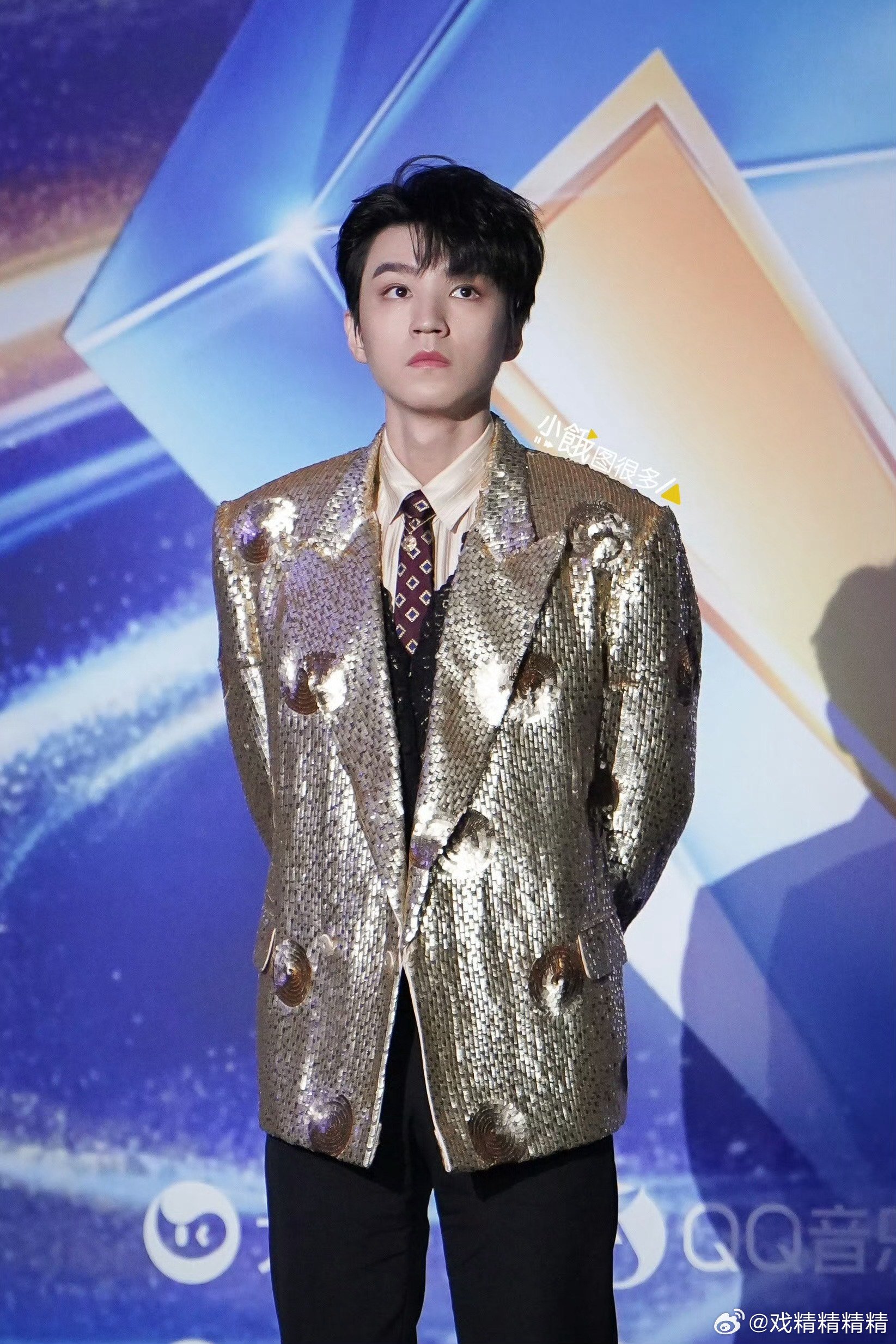 QQ音乐巅峰之夜红毯王俊凯和丁禹兮都参加了,这样看上去蓝色灯牌比绿色多啊
