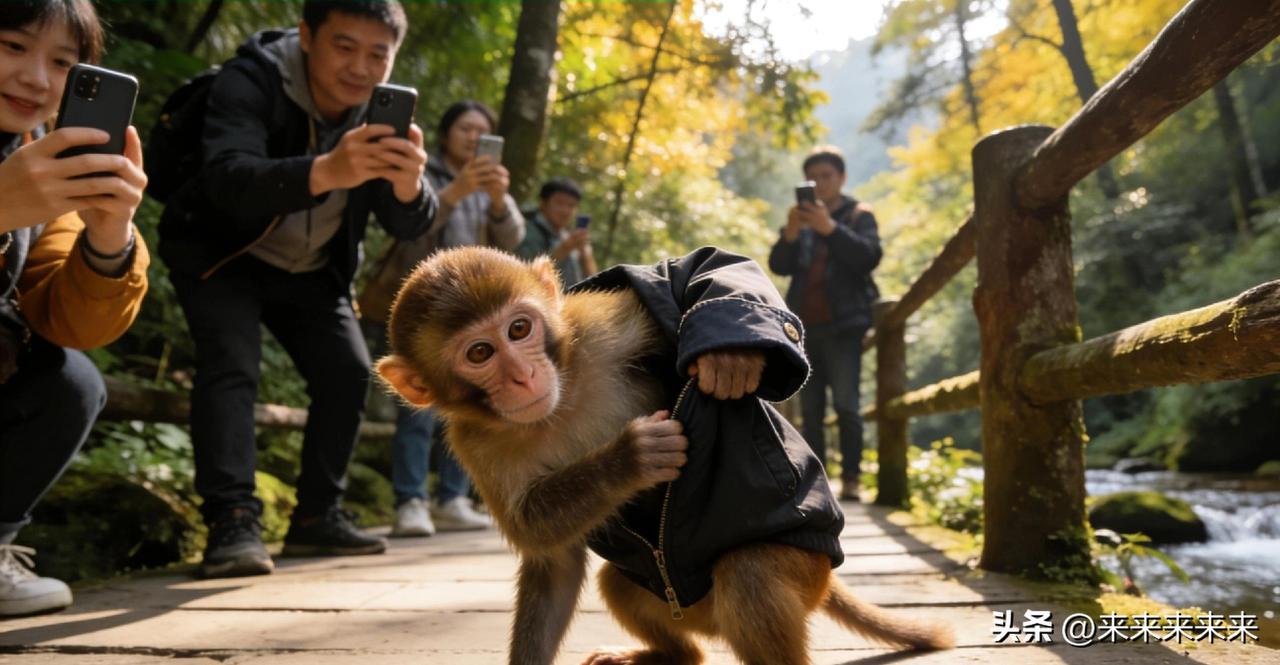 峨眉灵猴学穿衣,神似大圣初临凡 世人皆知《西游记》里石猴出世,学穿人衣的懵懂模样,谁能想到,这经典一幕竟在现实中上演。2026年3月26日,四川峨眉山清音阁至洪椿坪的生态猴区栈道上,一只幼年藏酋猴,上演了一桩让无数人直呼惊奇的趣事。 当日午后,几名游客正沿栈道游览,一只约一岁大的小猴,趁人不备,轻巧扯下一位女游客臂弯里的浅米色外套。与往常猴子抢物便撕咬破坏的模样不同,这只小猴抱着衣服窜到石阶上,竟将衣服平铺开来,前爪抓着衣领往身上披,歪着脑袋调整角度,笨拙又专注地把前肢往袖子里伸。试了两次,它先将右爪伸进袖口,左爪卡了几秒后也顺利套入,末了还不忘用爪子拍了拍衣服下摆,像极了人整理衣衫的模样。整个过程被游客拍下,小猴灵动又认真的神态,与经典影视中孙悟空初入人间学穿衣服的名场面高度重合,在场游客先是屏息,随即爆发出阵阵惊呼与笑声。 视频流传开来,无数网友看后戏称这是“猴哥转世到了峨眉山”。峨眉山景区管委会于3月27日发布声明,确认视频内容真实,涉事小猴健康状况良好,未对游客造成伤害,同时已增派工作人员在猴区巡逻,维护现场秩序,引导游客与灵猴保持安全距离,文明观猴。 针对网友的诸多调侃,景区动物管理处的专家给出了科学解释。这只小猴是国家二级保护动物藏酋猴,俗称“峨眉猴”“猴居士”,峨眉山现有十余群、五百余只。藏酋猴本就智商极高,记忆力与模仿能力出众,而这只幼年小猴正处于认知发展的关键期,对新鲜事物充满好奇,长期与人类共处的环境,让它观察到了人穿衣的动作,才有了这次自发的模仿行为,并非坊间奇谈里的“转世”。 峨眉山的灵猴,素来与山中僧众、游客相伴,千百年间便有“猴居士”的雅称。近年来,随着景区生态保护的力度加大,人猴分离的科学管理模式推行,猴群的生存环境得到了妥善保障,健康状况稳定,也才有了这份与人类相处的从容,和展现自身灵性的空间。 我们在为这只小猴的灵动会心一笑时,更该明白,野生动物的灵性,源于自然的馈赠,也源于人类对生命的敬畏。保持安全距离,不投喂、不挑逗,尊重它们的天性,才是对这些山间生灵最好的守护。愿这只灵猴能在峨眉山水间自在生长,也愿我们能始终守住这份与自然和谐共处的初心。