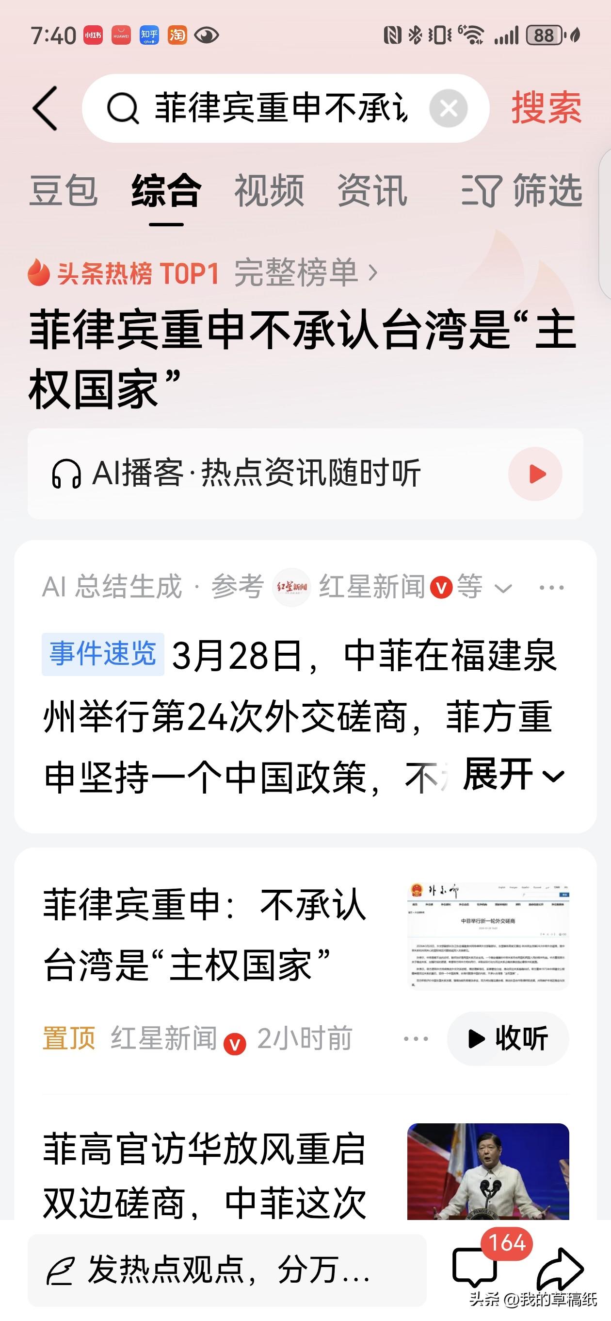 变脸比翻书快!菲律宾刚改口:不承认台湾是“主权国家”! 前阵子还在台海问题上频频挑衅,小马科斯更是直言台海冲突菲律宾难置身事外,公然给“台独”撑腰,彻底惹怒中国。 结果转头就在中菲磋商上紧急改口,明确重申一个中国,不承认台湾是主权国家,态度直接大反转。 说白了就是典型的骑墙派,一边抱紧美国大腿搅局,一边又怕得罪中国损失利益,两头捞好处。 嘴上承诺再好听都没用,外交辞令谁都会说。咱们不看广告看疗效,后续敢再挑衅,绝不惯着! 菲律宾改口 菲律宾重申不承认台湾是"主权国家" 分享今日感悟啦